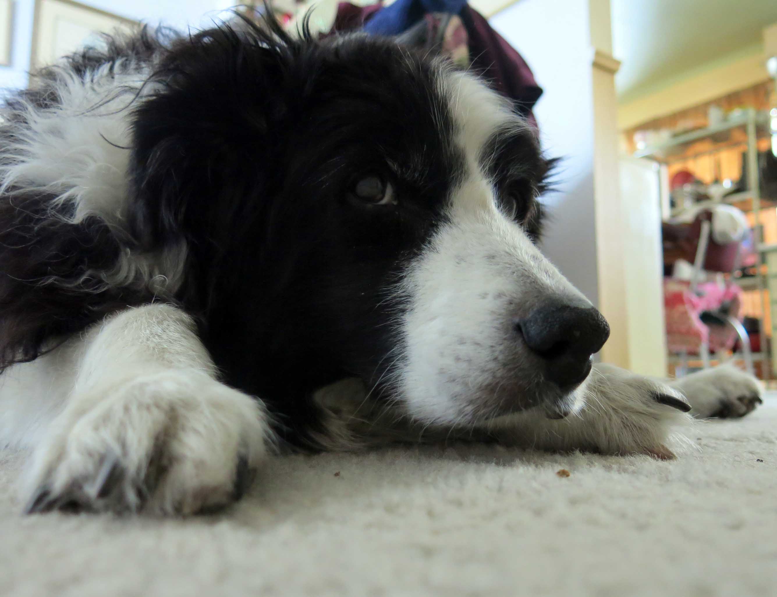 After my buddy Slipper died, the guy I live with broke the cardinal rule about such events, and made a major decision within a couple of weeks, and introduced a rescued border collie into our house. I think the rescued dog had been abused, too, because I was attacked constantly, even though I tried to make friends, and the dog had to go back the next day. The guy I live with apologized to me, profusely, but I understood. He could have gotten me a puppy to train after that, but was so traumatized by the experience that nothing happened. I admit I do like being the center of attention.