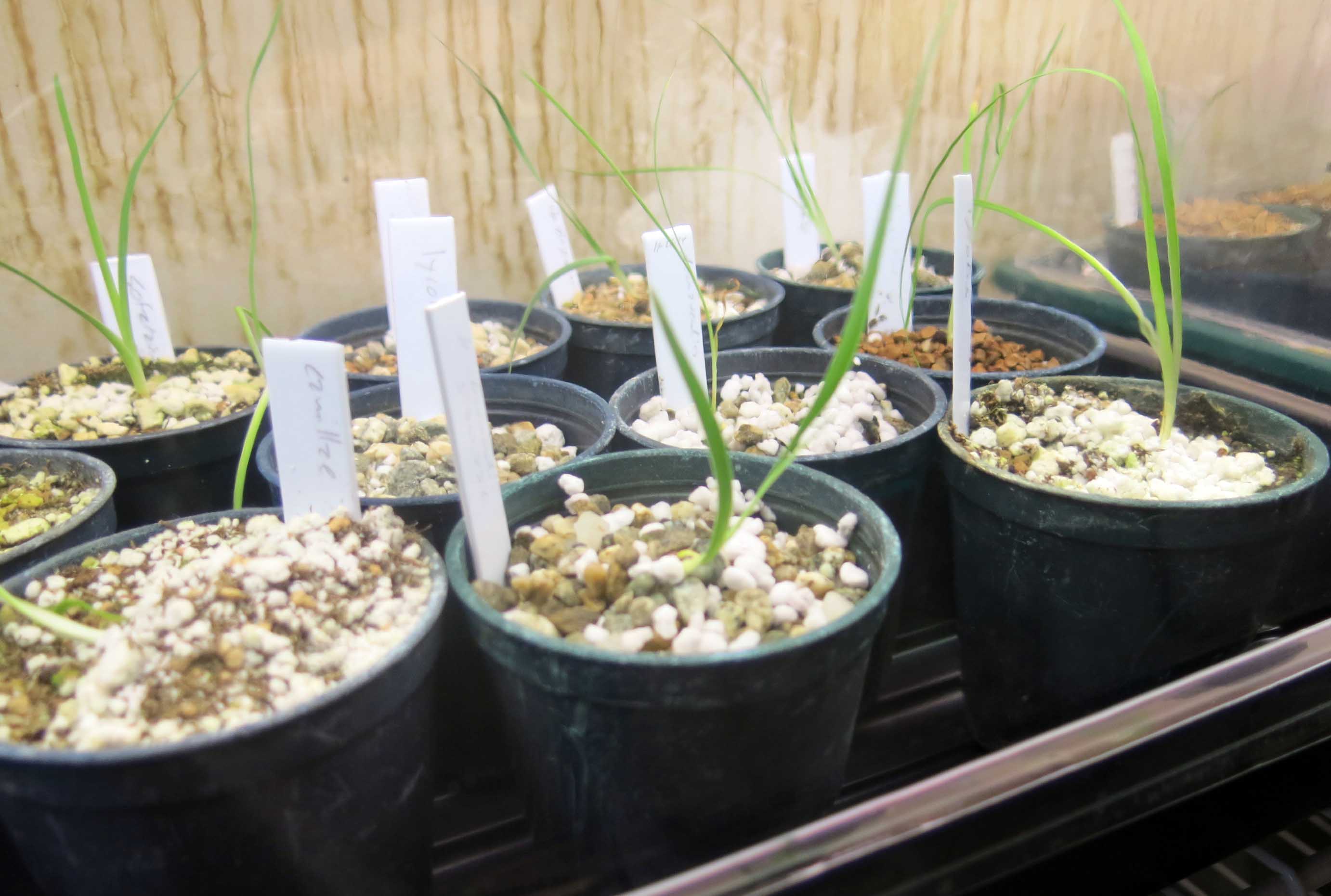 Oh, the irises are still alive. Here’s an out-of-focus picture to prove it. The guy I live with looks at them all the time, and mists them once in a while. Some of them start to grow with their roots in the air, which I guess is dumb, and they have to be gently replanted. Some of the irises have four leaves now.