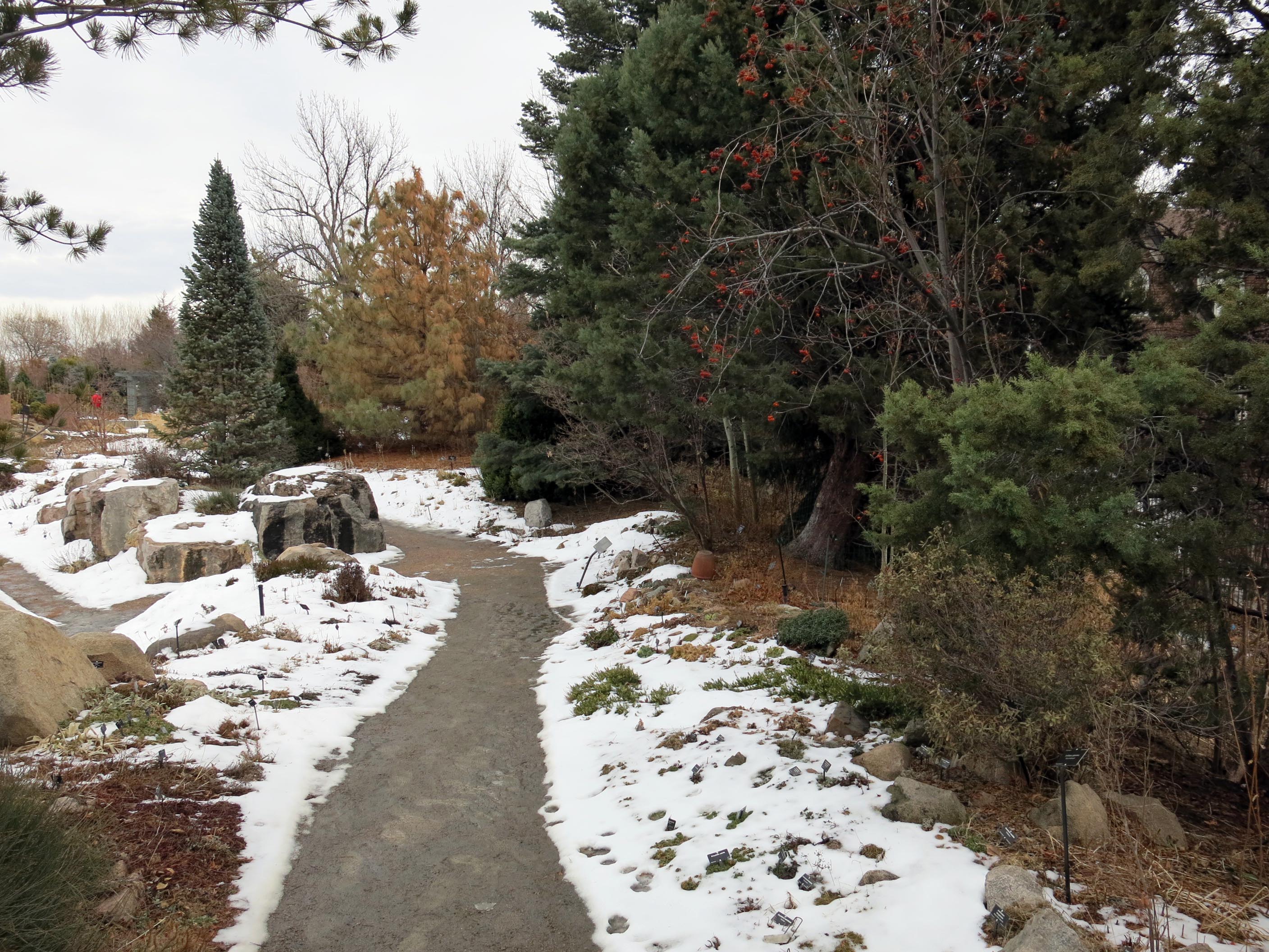 Greetings and salutations, everyone; yes, once again it is I, Chess the excellent purebred border collie, filling in for the guy I live with (I had to, because he left me at home), and here to bring you some pictures of Denver Botanic Gardens in January. You may remember me from such posts as “Guarding The Fort”, among so many, many others in which I was left alone.