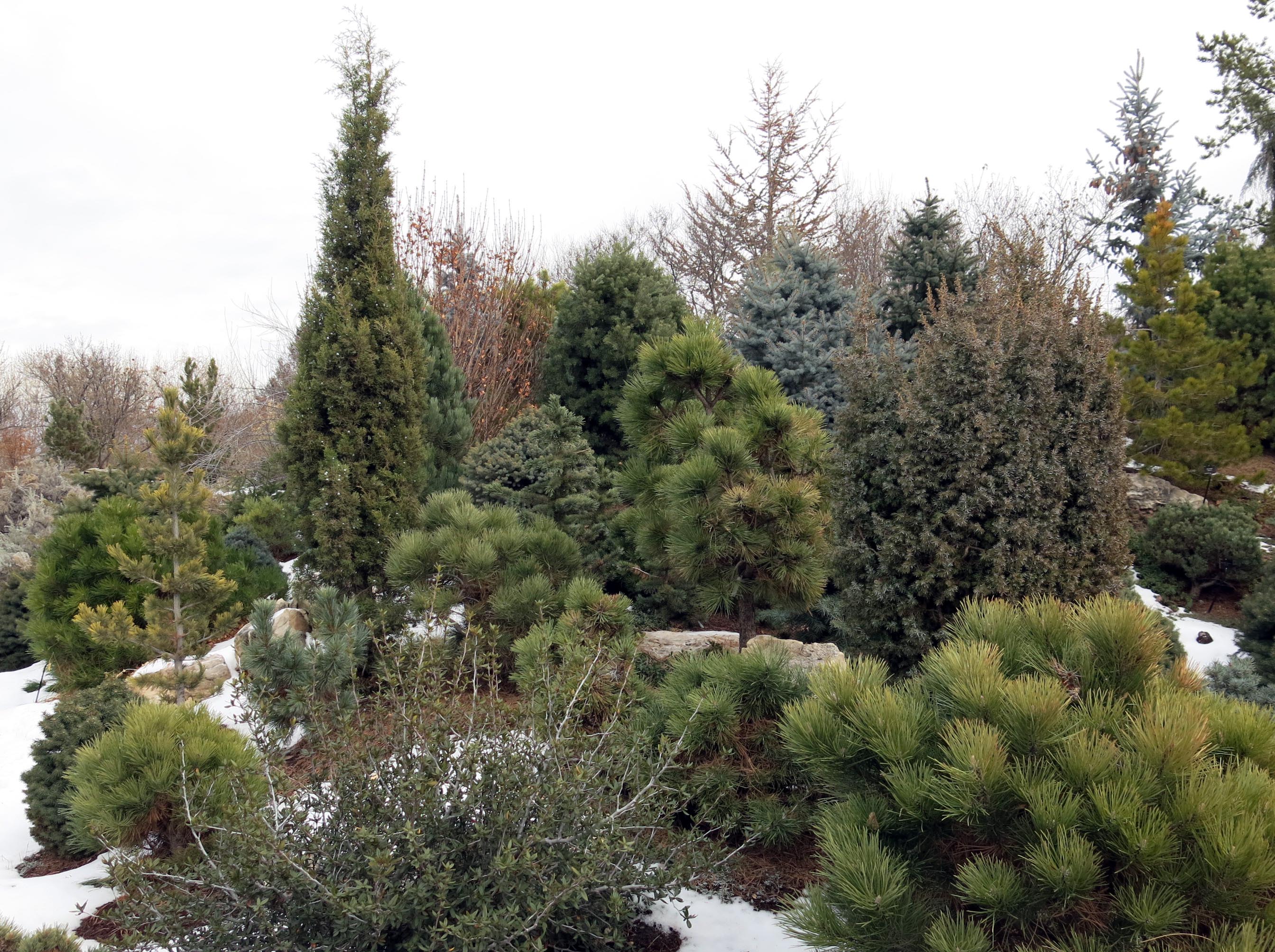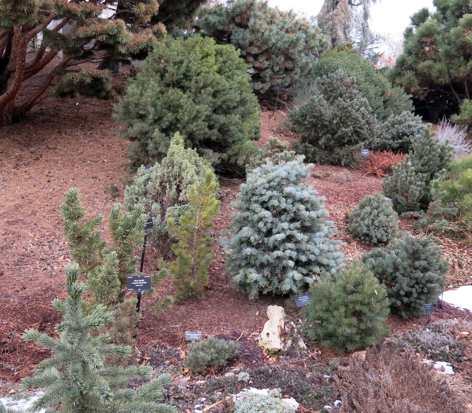 Thanks; I must agree that my nose is excellent, though the guy I live with claims I’m “wrecking” it by eating snow and that I need Nose Balm. I don’t think there is such a thing. For once, the single-leaf pinyon at DBG is smaller than the one here; there are actually a lot of them here, but just one big one. Funny, he learned about this pine from Graham Stuart Thomas’s Three Gardens; at that time, a long time ago, you couldn’t get a single-leaf pinyon anywhere, but now you can. And do Google Sequioadendron giganteum pendulum to see how totally weirdly these trees can grow. “Something to be admired in someone else’s garden” is the verdict I hear. That dwarf blue spruce in the conifer garden is about the bluest ever, huh. Looks like the name is “C. Blue”. I guess quite a few of these aren’t in the trade.