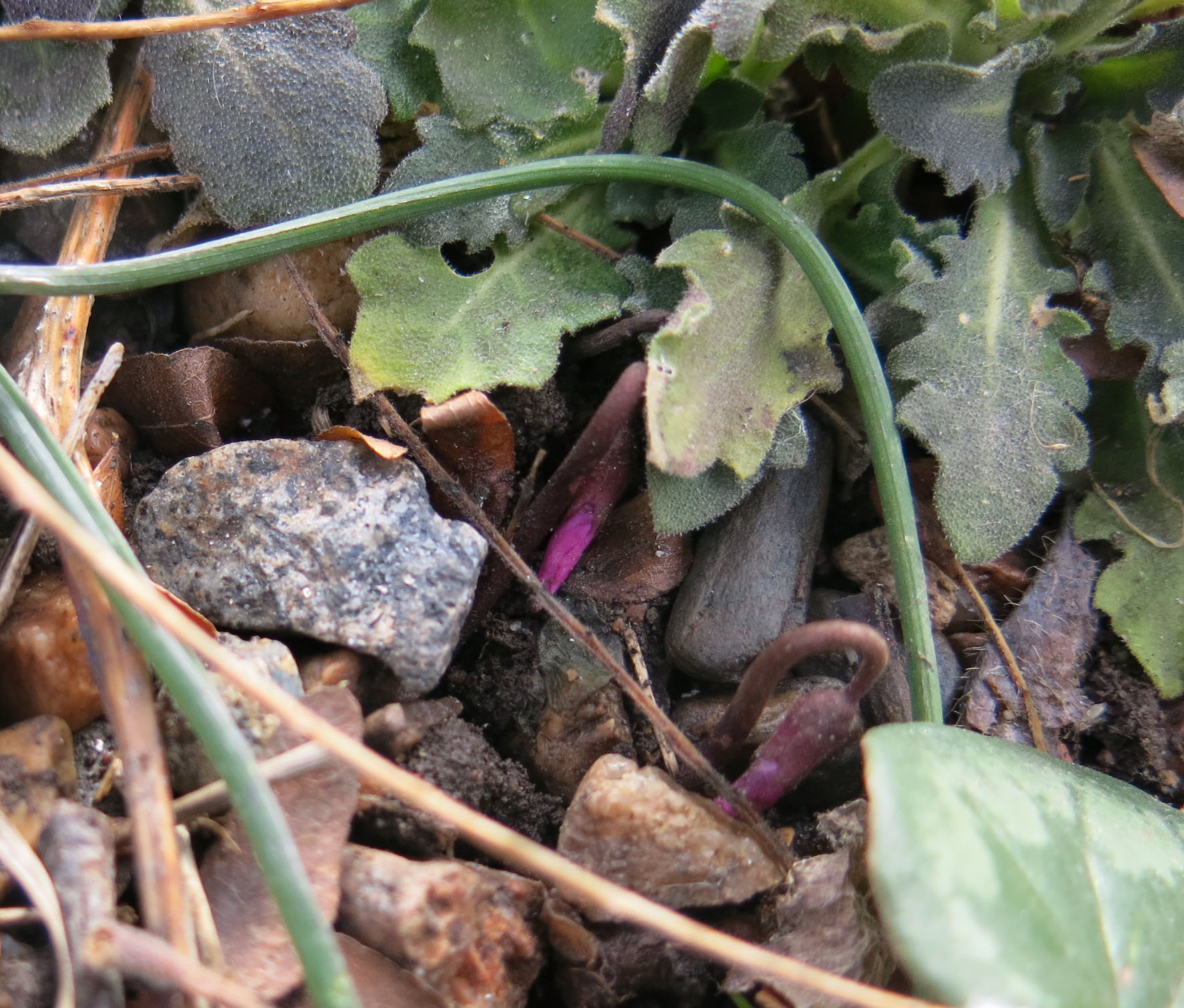 Some color showing on Cyclamen coum.