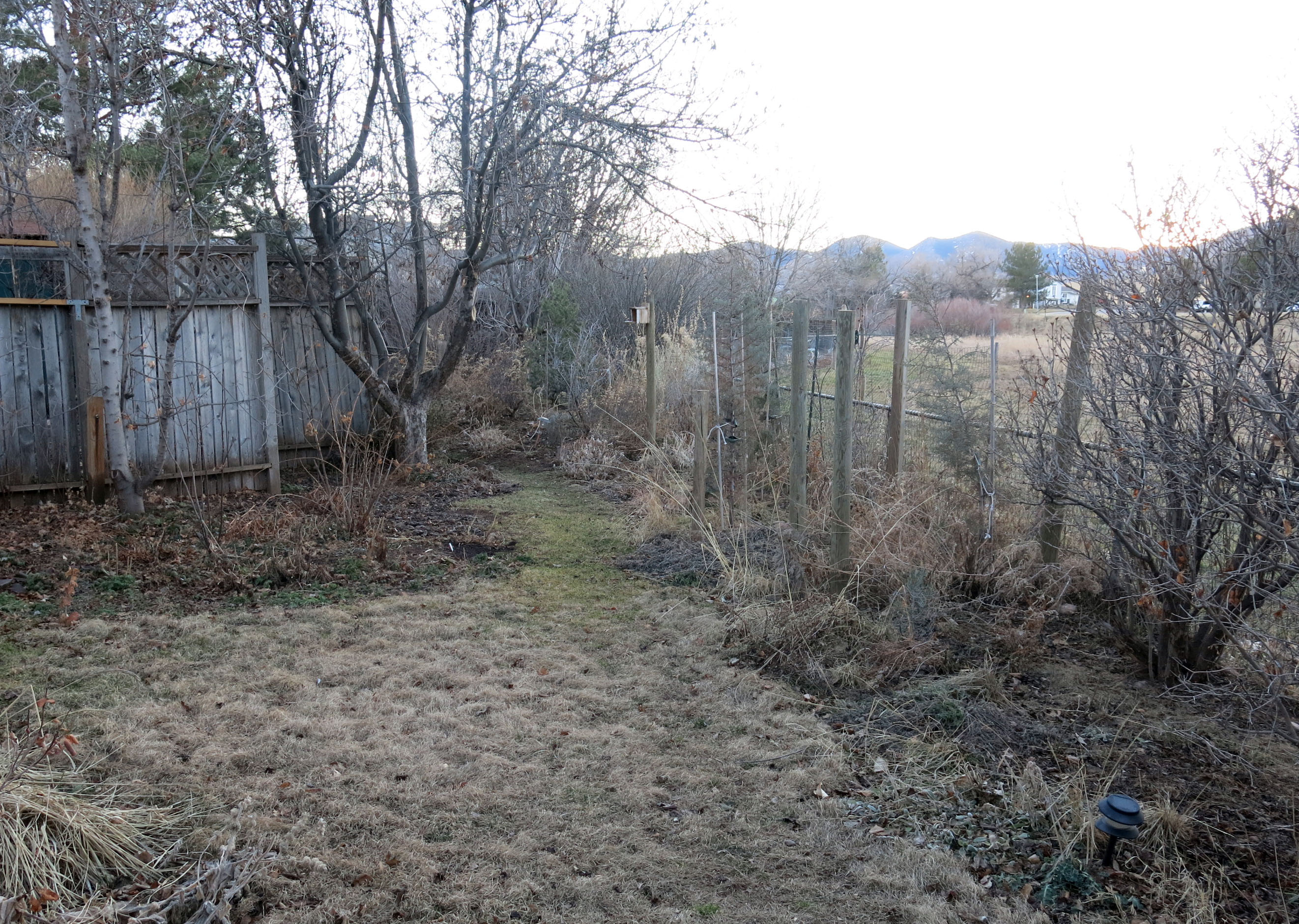 The thing that made him feel pretty good is the Arizona cypresses, one of which you can see leaning, in the center right, sort of. They’re still alive. Maybe two dozen cypresses have been planted in the back yard, and almost all of them have died. The guy I live with claimed that the root balls were too small for the size of the tree, and so last year he bought some with more or less the right ratio of roots to top, and they’re still alive. Right now, anyway.