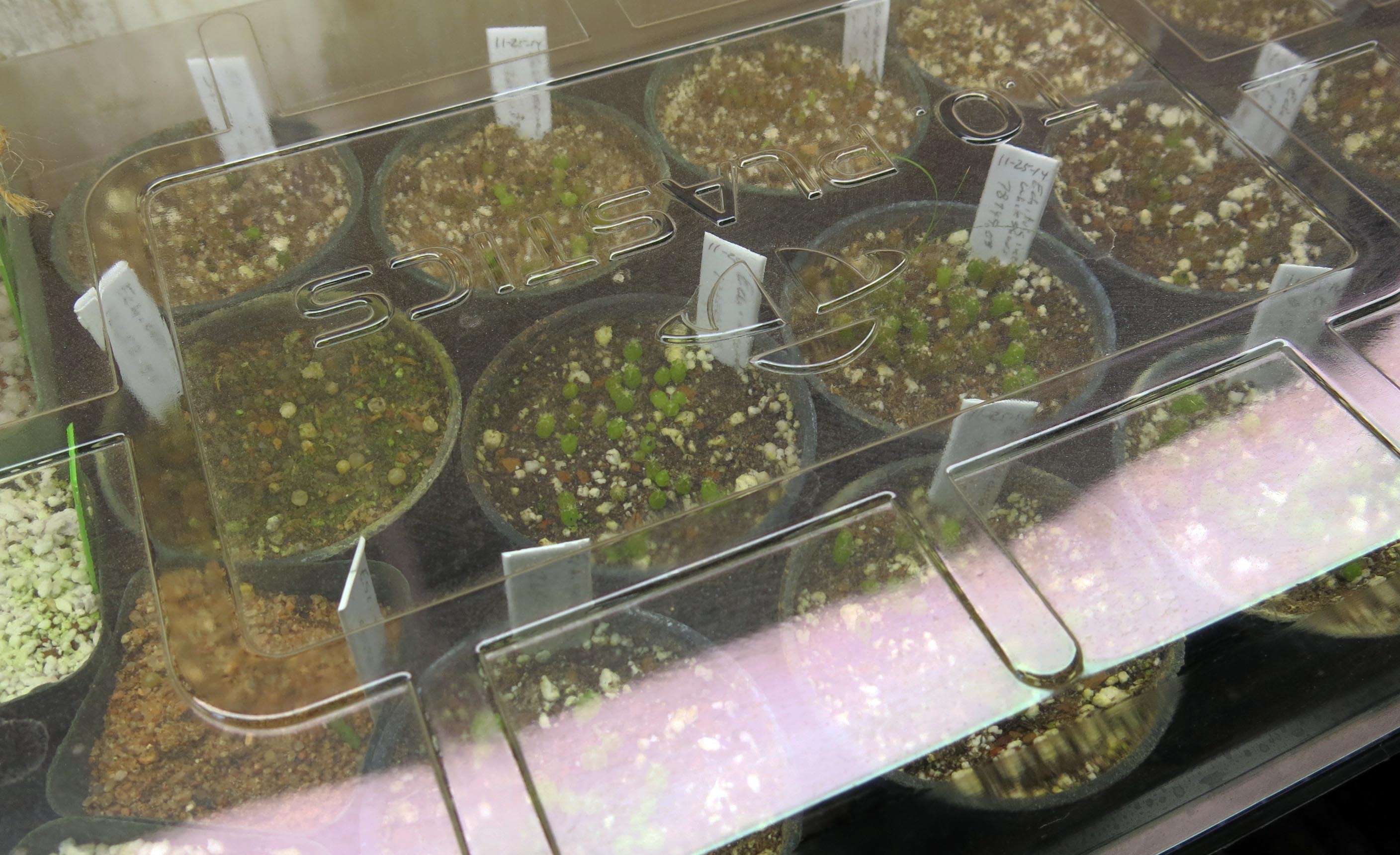Thanks; actually, the cactus in the pictures (like Sclerocactus mesae-verdae) germinated in two days. The guy I live with told me he had sowed seed every winter for twenty-five years and nothing had happened, so he tried chipping the seed, and that worked. This one is an Endangered Species, so you have to get seed from Mesa Garden, because they have a permit. (The seed comes from stock plants at their nursery.) He says he’s too old to become a millionaire. And what would happen, if he did? He’d get a small ranch and get more if us purebred border collies, and the world would no longer revolve around me. He did say that if that happened (like if someone just sent him a check in the mail), it wouldn’t be in a place with much snow. I like snow. Maybe you can tell.