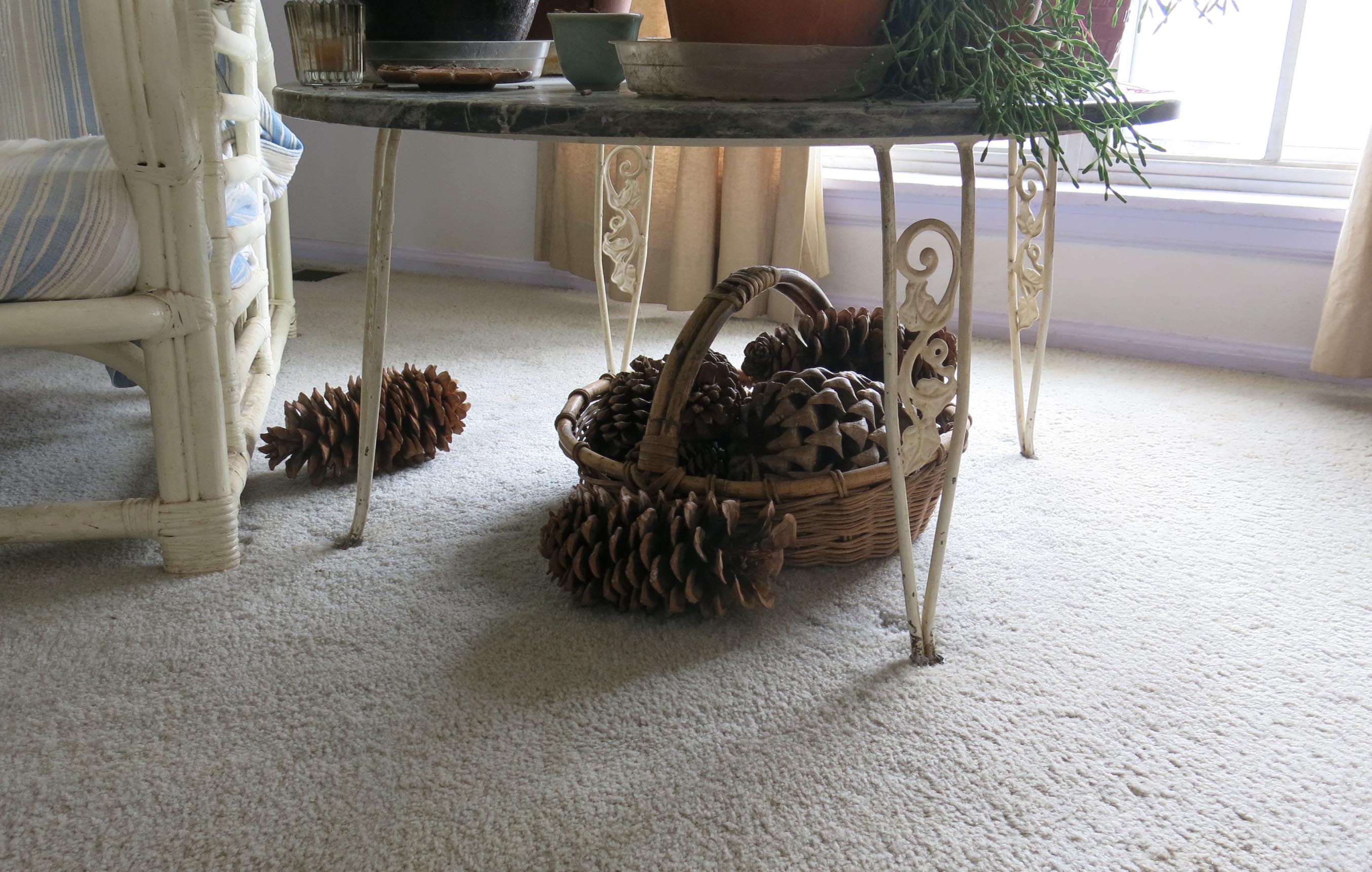 I discovered that there are some rules here. “No eating the pine cones” is the only one so far. This is this collection of pine cones that’s supposed to be really important or something. They were in the basket before I showed up. I tried to pretend that someone else had moved them, but the guy I live with didn’t believe me.