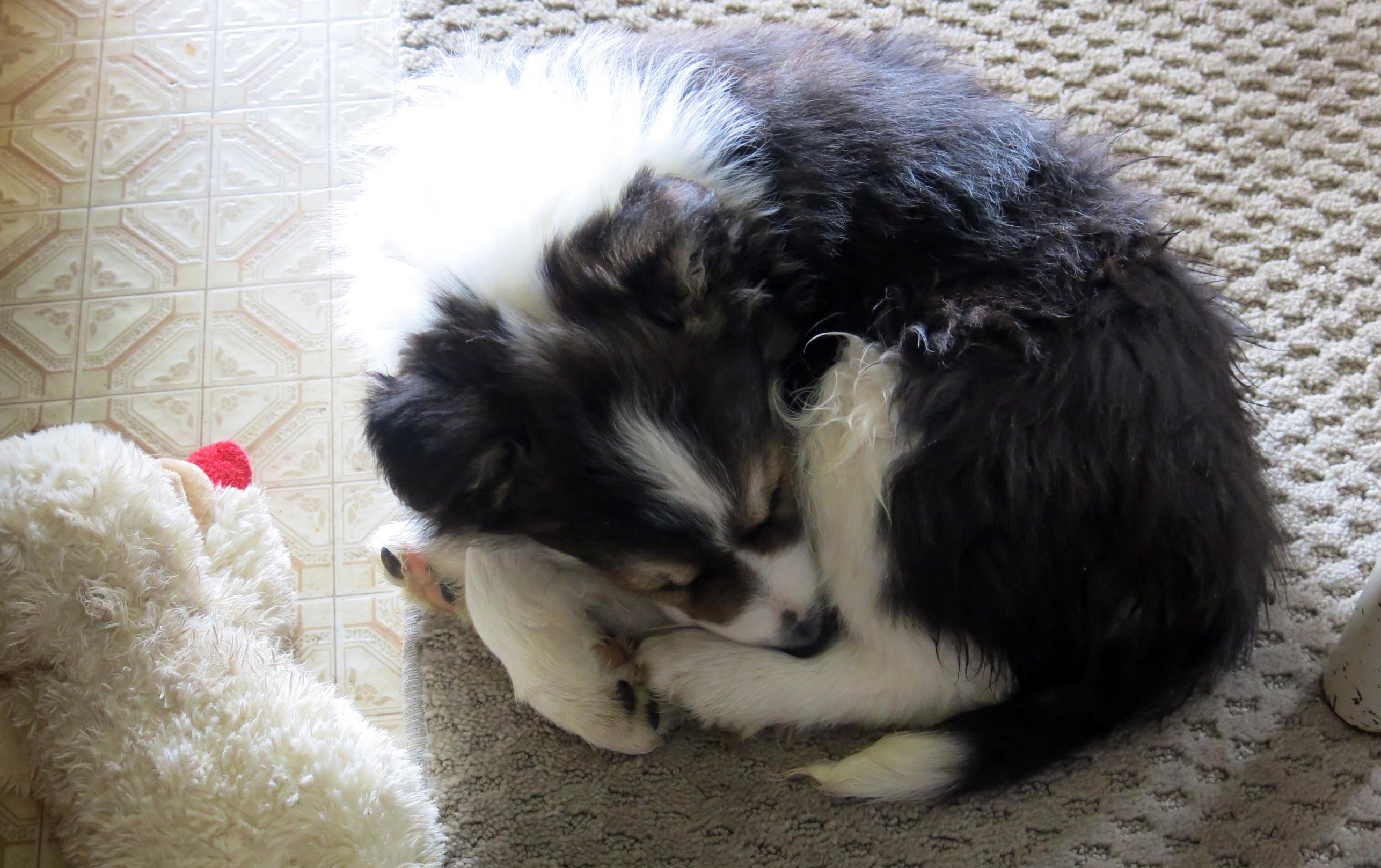 Uh-oh. I know that characteristic pose. I know that “look” that goes with that characteristic pose. Somebody, ahem, better lay in a supply of brie. Pure bred powder collie puppies are so bouncy and flouncy and pouncy in the snow. Fun fun fun. And then they curl up for a nap …Heart Be Still. Careful, tho, a pure bred border collie puppy can be so cute that they could break the internet.