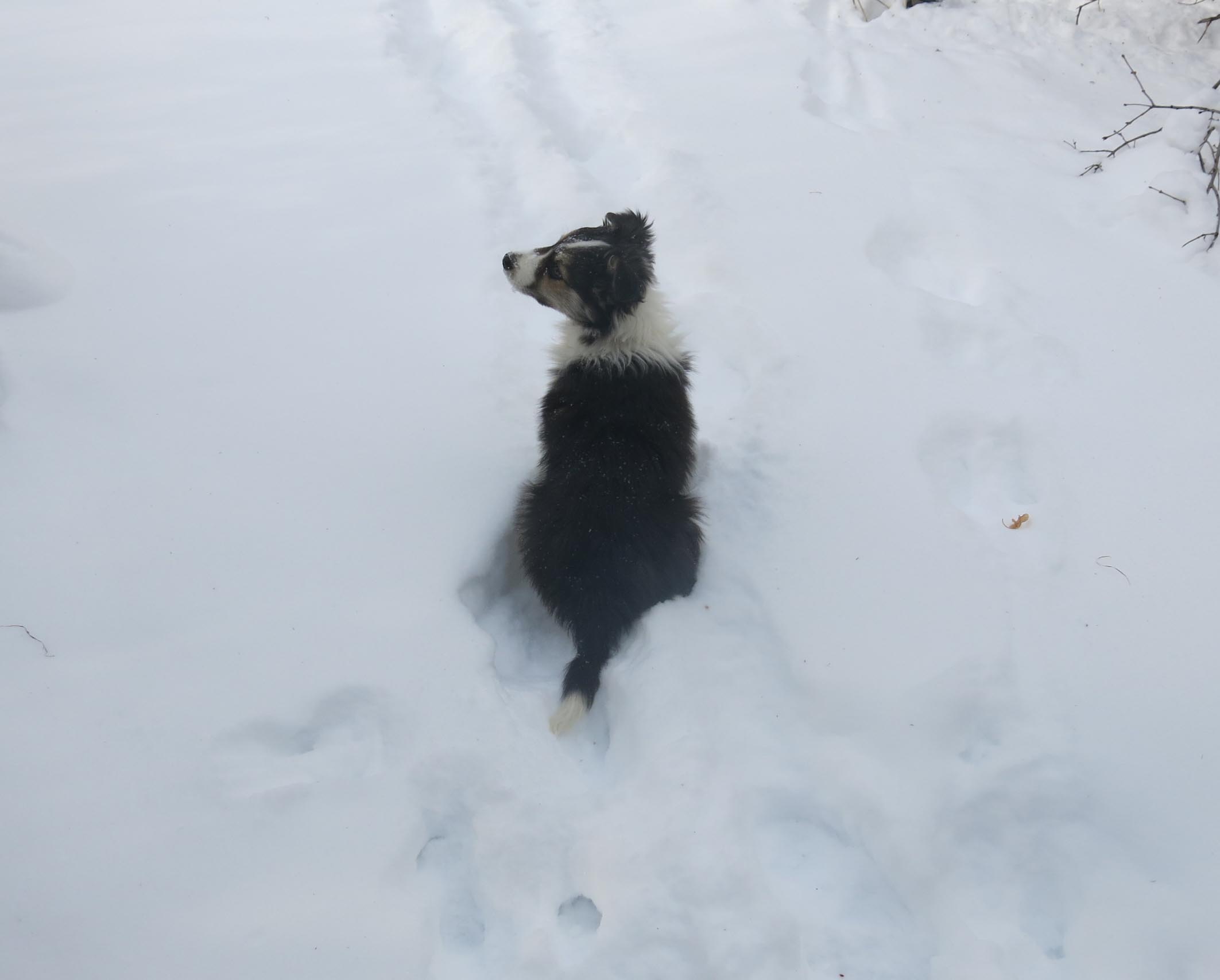 Hello everyone; yes, once again it is I, Mani the extremely small purebred border collie, here to tell you all about my day. There really isn’t any gardening happening because there’s snow on the ground, and it’s snowing, and the guy I live with, who feels a lot differently about snow from the way I do, says it will be snowing for ever, which sounds completely excellent to me. So I guess this post will have to be almost totally about me. I think I can deal with that.