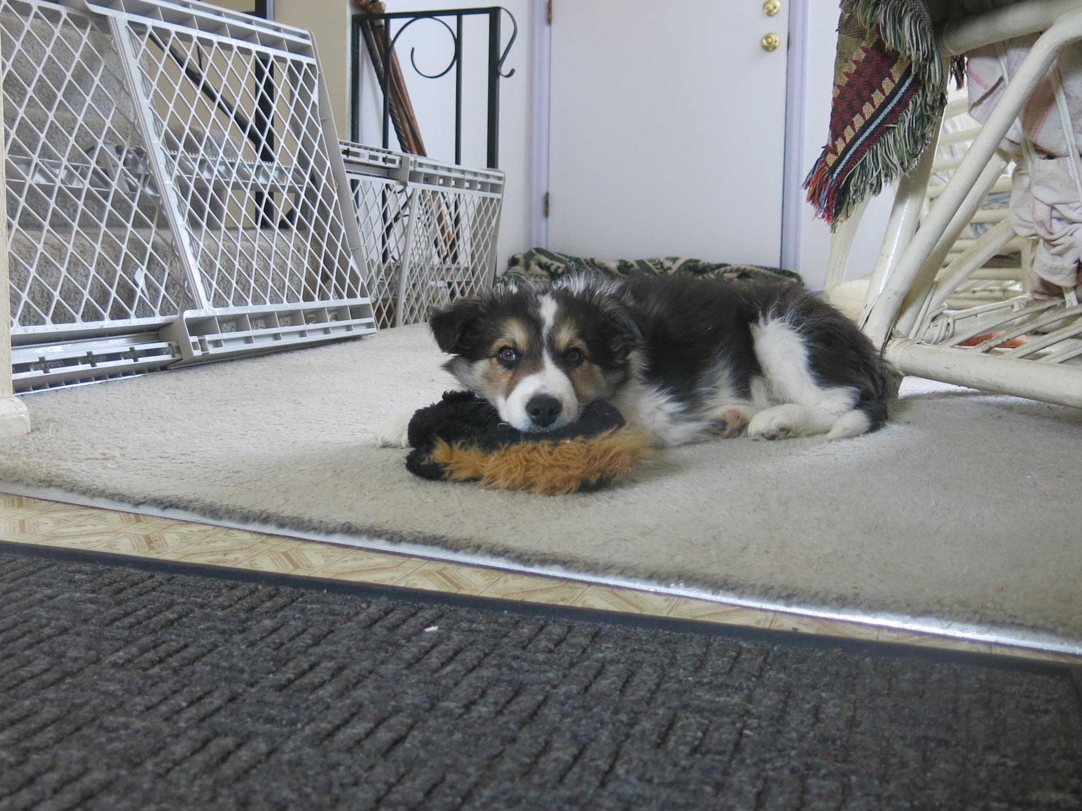 Thanks; an extremely small purebred border collie has learned, with the gate blocking the upstairs, that it only leans there, and can be climbed up and over, if absolutely necessary. The guy I live with put most of the toys back in the basket, because he says he “dislikes clutter”. I can just go get them when I need them, anyway. About the chew deals, which is what they’re called around here, chew deals, I’m extremely little and have the attention span of, well, some people he knows. The fact that they were both left (I mean hidden) in the same place doesn’t mean anything.