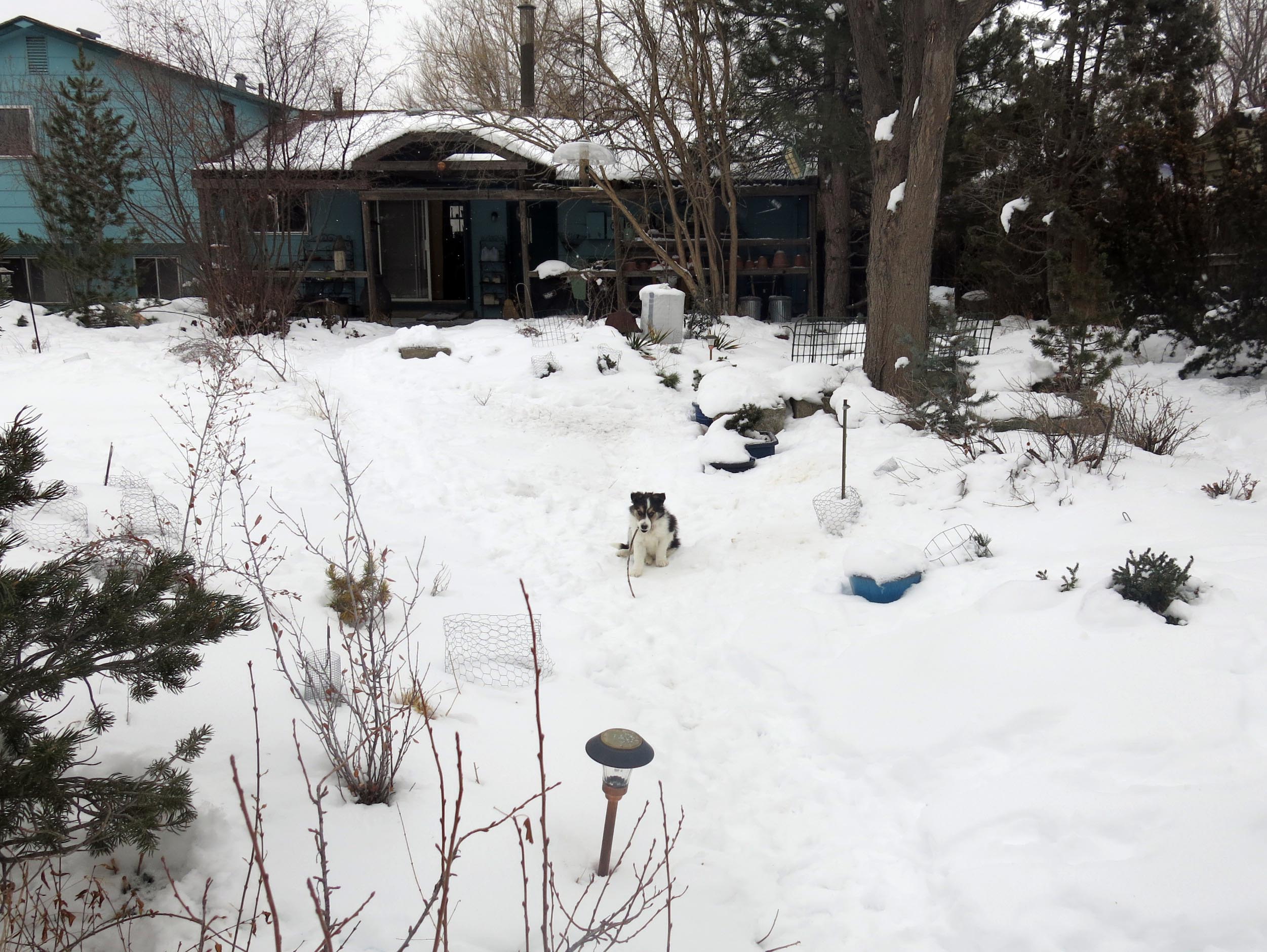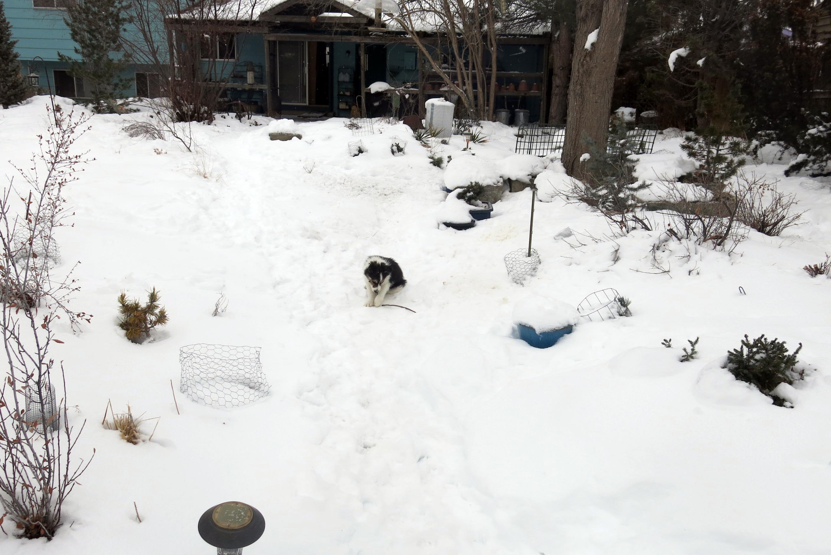 We purebred border collies like cool weather, and especially snow. Snow is so excellent, it’s excellent. We go outside a couple of times a day even when it’s cold, and he watches me run back and forth in the snow while he stands there complaining about how cold it is. The guy I live with grudgingly admits that “the snow is good for the seed pots” outdoors, but he likes it about ninety degrees F for days on end. He does say he might get an air conditioner this year for the upstairs bedroom, for me, of course.