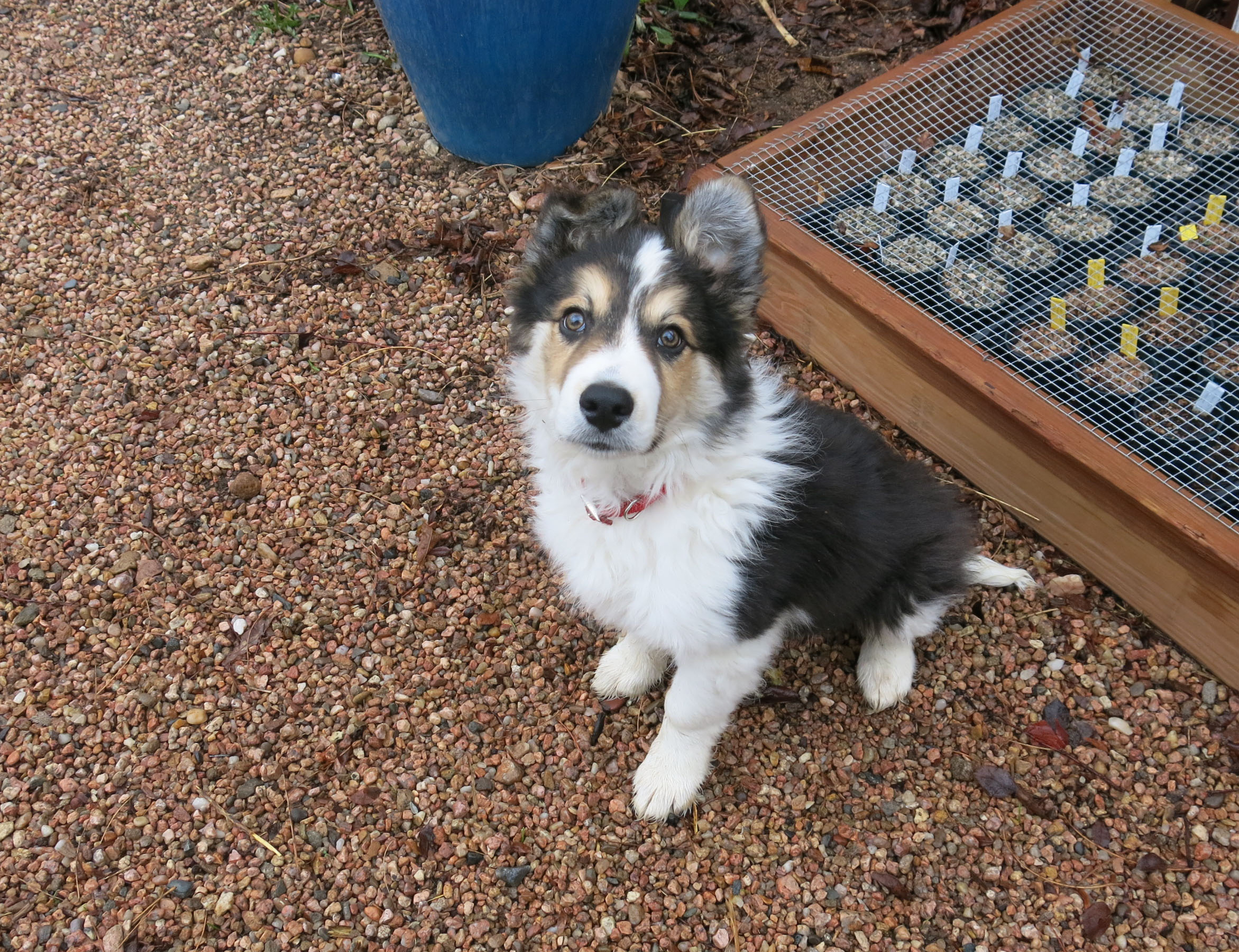 Greetings and salutations, everyone; yes, once again it is I, Mani the tiny purebred border collie, filling in for the guy I live with (who doesn’t have anything to say anyway), and here to bring you the latest news from our garden, and maybe a picture or two of me being cute. You may remember me from such posts as “Still More Melting”, among at least a few others.