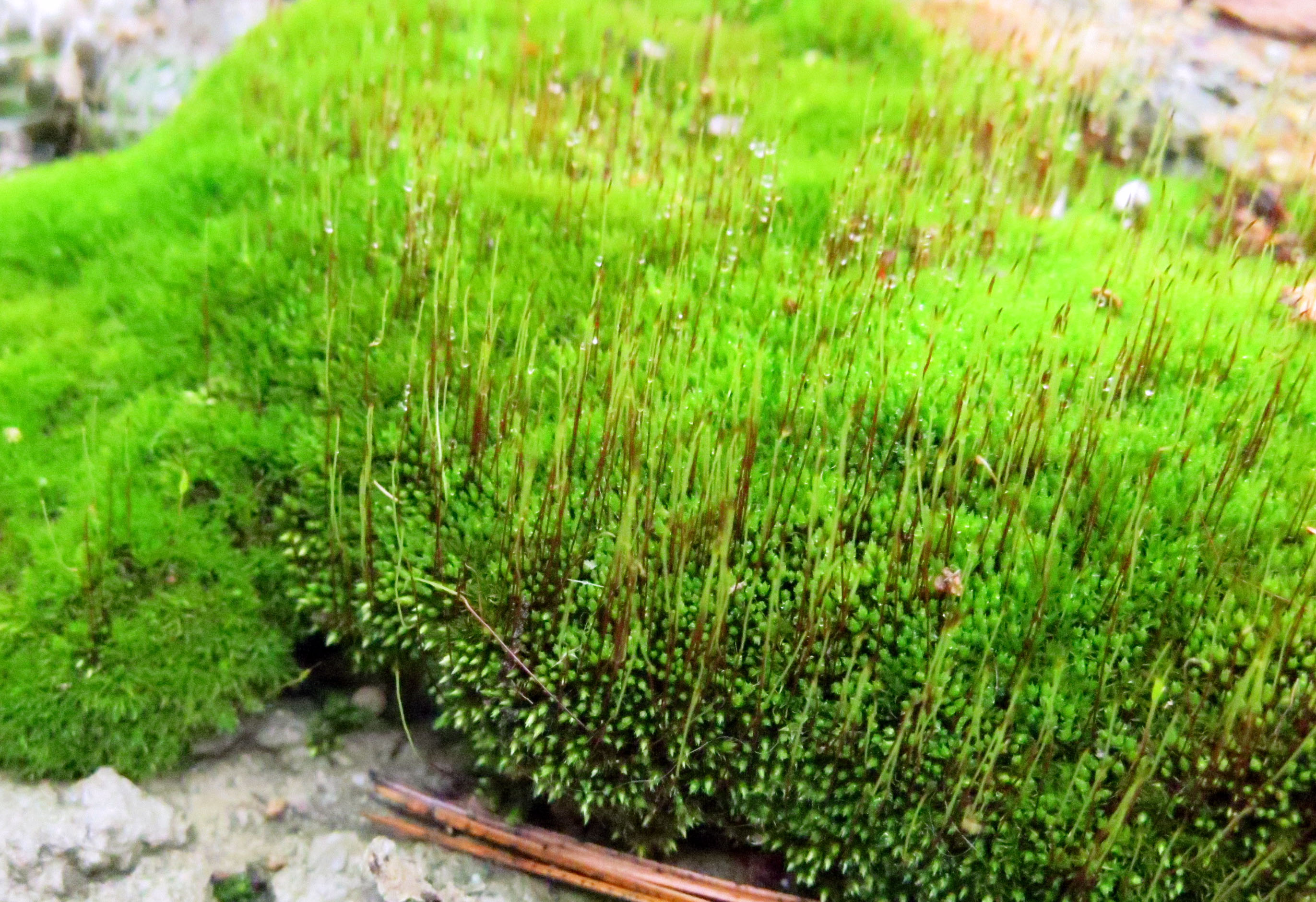Thanks; I like my ears pretty well. The guy I live with says that the moss is probably a native moss, a species of Grimmia, and what it does is, it gets all green and happy like this, and then in summer it dries out completely, which is good because then it doesn’t need any water, and then in late autumn it turns green again.