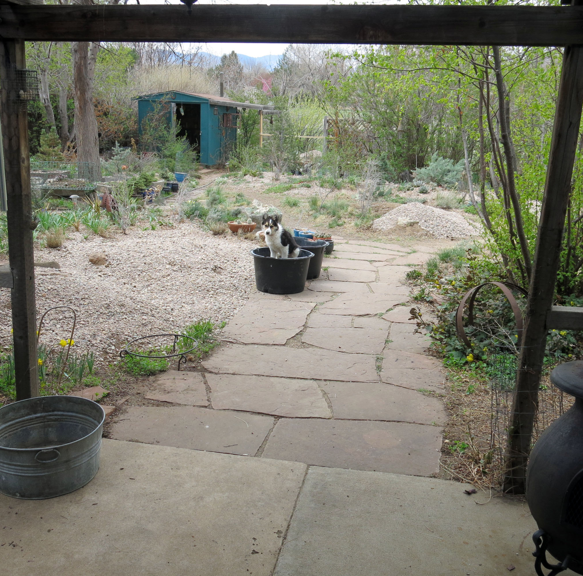 Excellent post. Especially loved the walkabout. Your garden is je ne sais quoi, and it was nice to get perspective on the whole. I think the strewn shoes are fitting for such a tiny-but-not-as-tiny-as-before pure bred border collie’s garden! Sweet!