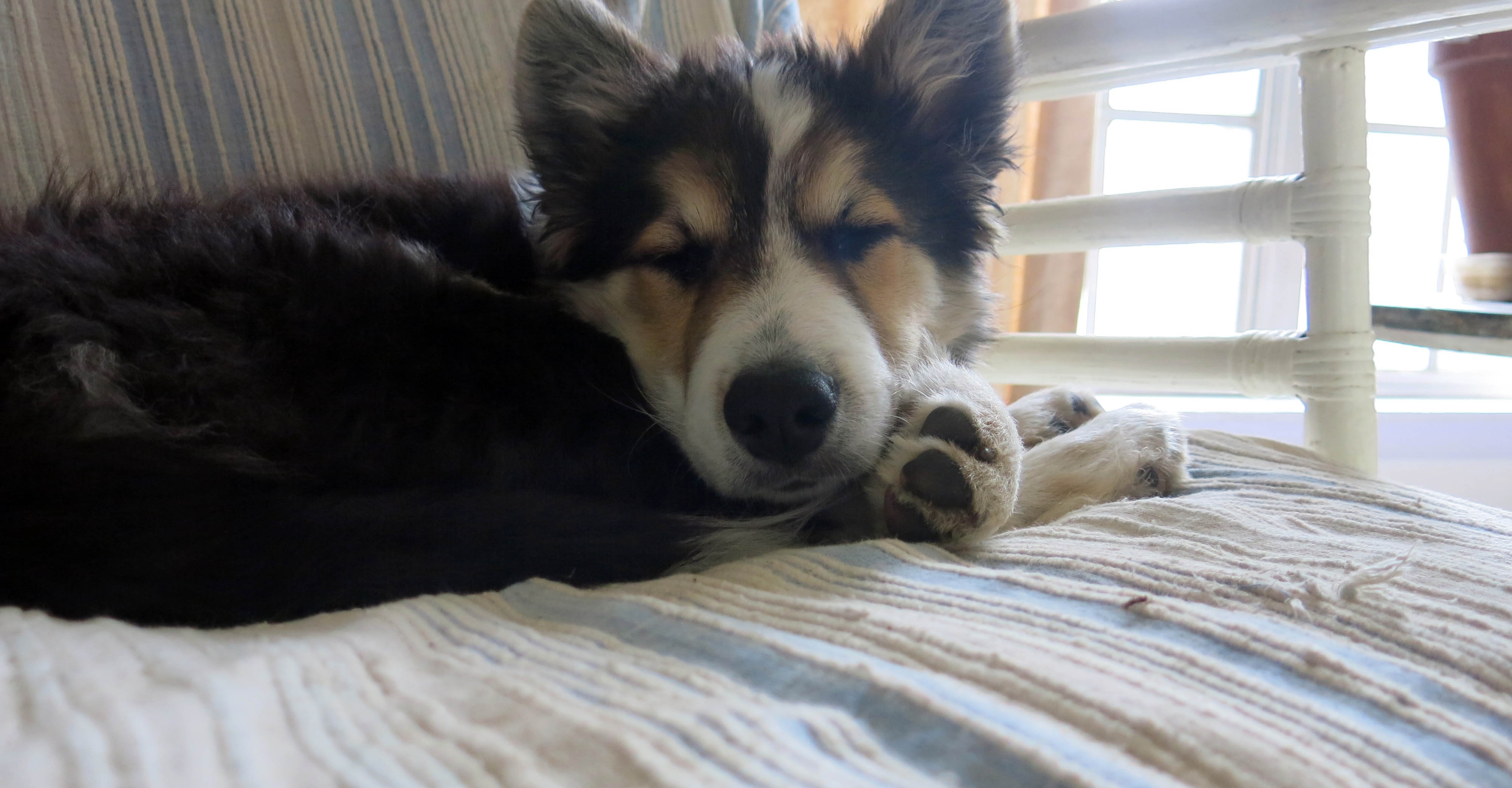 Here I am in a characteristic pose. I’m not really asleep, just pondering the cosmos. I find this chair to be rather comfortable, if a bit creaky. The guy I live with said I was the first purebred border collie to sleep in this chair. I’m kind of boldly going where no purebred border collie has gone before.