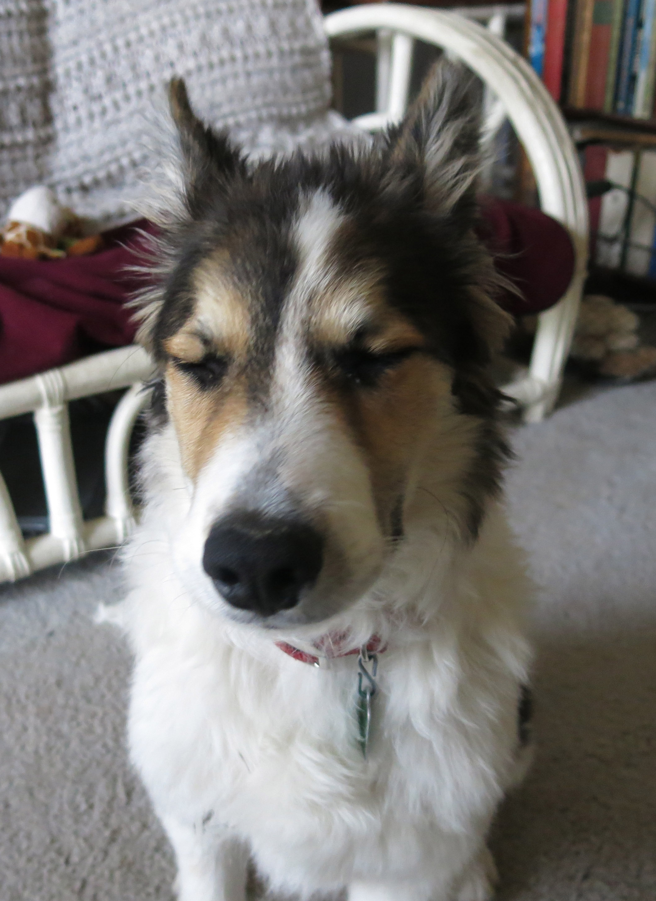 Here I am in a characteristic pose. I do know that my nose is slightly dirty. There’s a lot of dirt out in back, and I like to stick my nose in it.