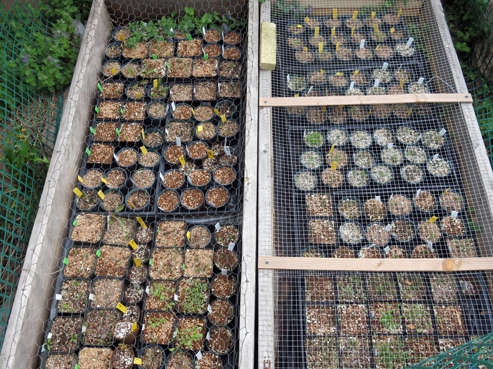 The seed pots in sun all have seedlings in them, and I think you can see some of them.