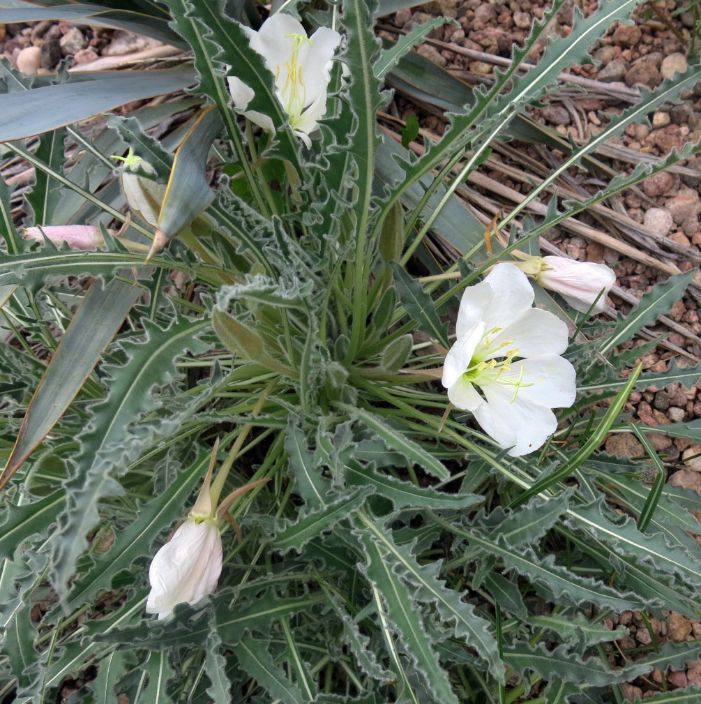 Right across the path from the patio where these seed frames are, the evening primrose, Oenothera caespitosa, is blooming. It started night before last, I think. It blooms at night and smells like lemons.