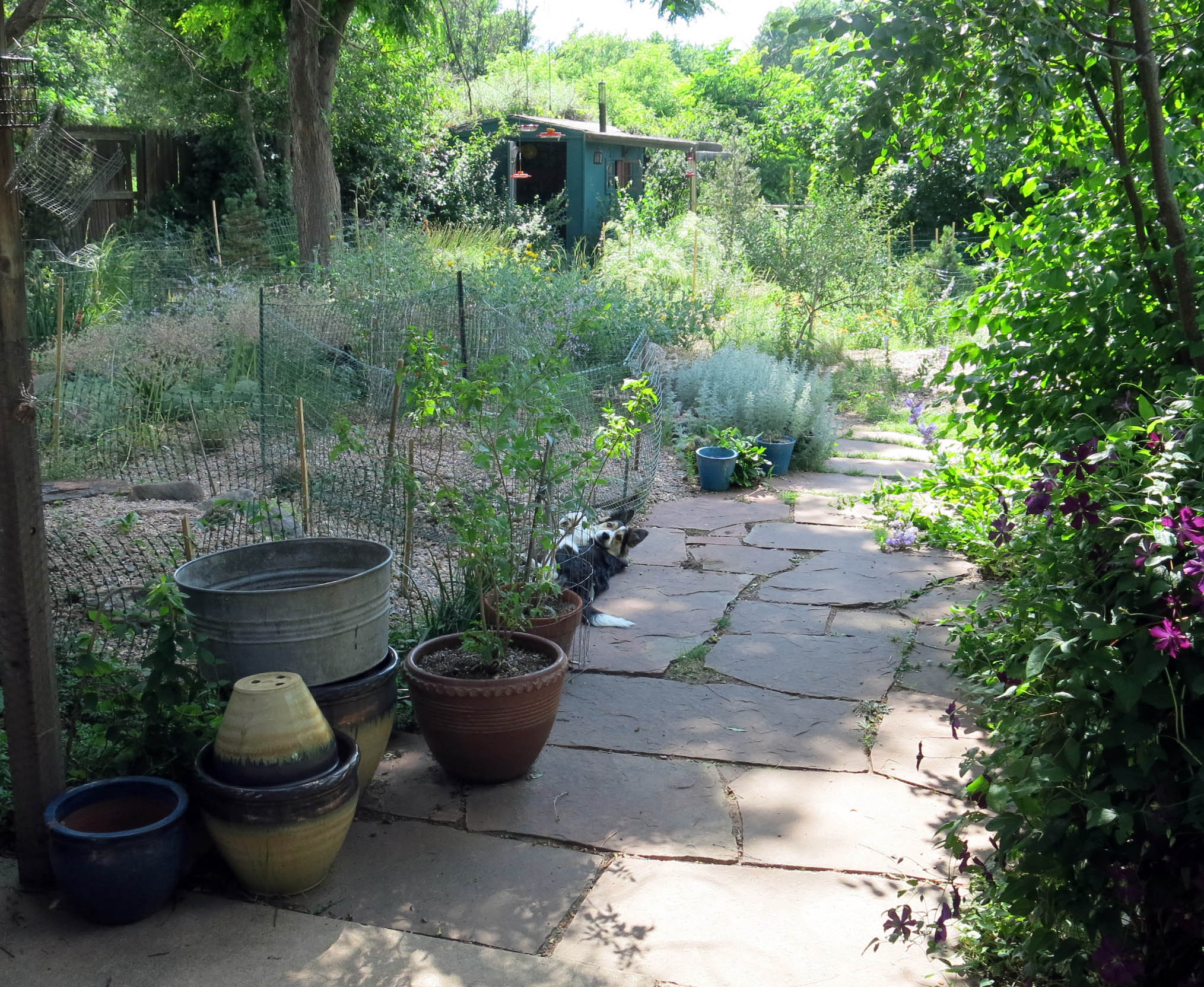 Oh, are you wearing a 4th of July bandana? So much better than the cone. Will we be looking to you for fashion advice too? I expect so, since you look very jaunty. Hot there, huh? Not as hot as S. Oregon, the hot spot of the nation. What is the fluffy grey plant behind you on the path in the first picture? By the blue pots. Is it an Artemisia? It’s very pretty. Did you dip your toes in the creek? The water looks very clear. Well you look very happy in your freedom regained, and why wouldn’t you?