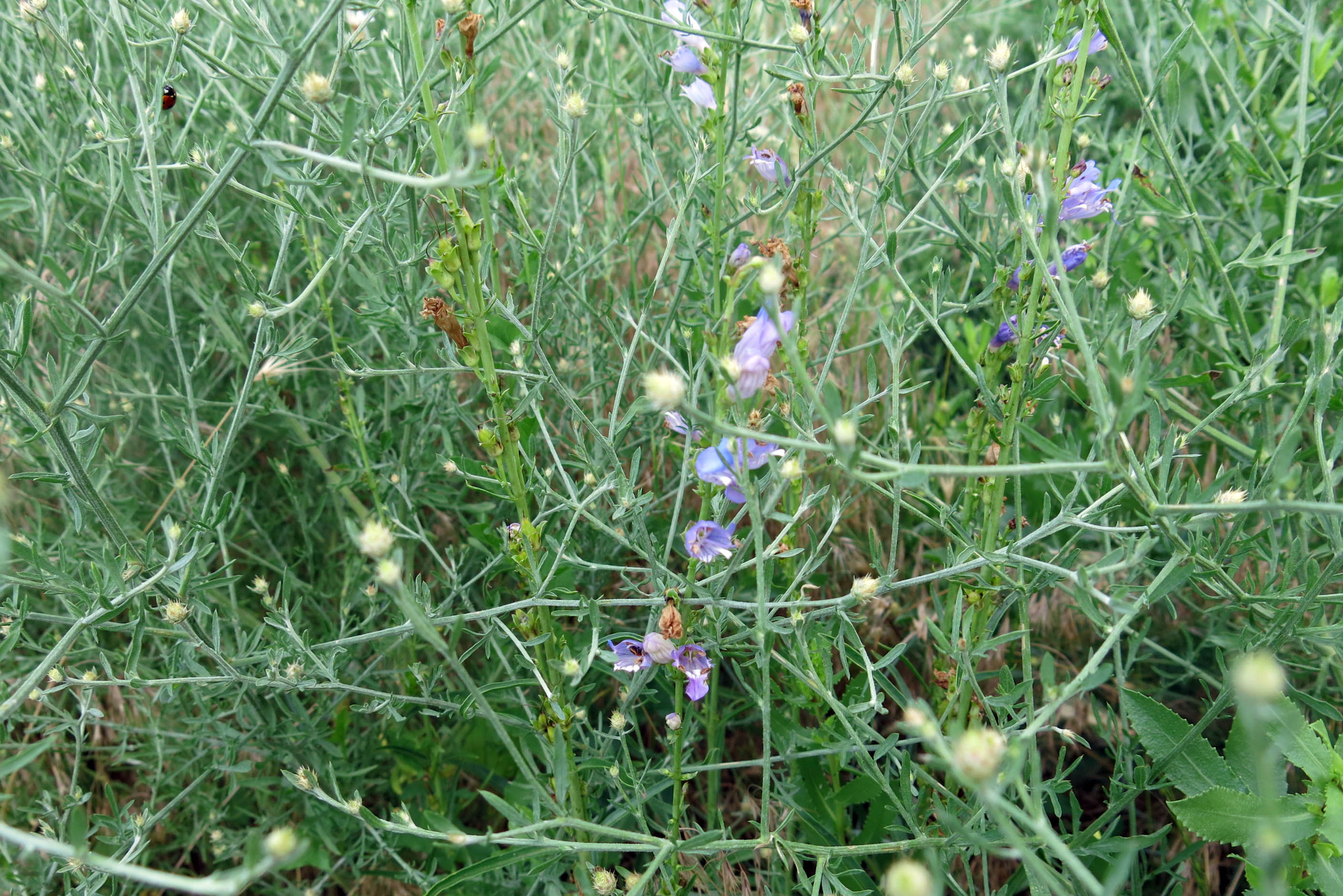 In one place, the weeds were so high I couldn’t even see over them, and neither could the guy I live with, but we did see an actual native plant, Penstemon virgatus var. asa-grayi, which you can see here, if you look hard enough. There’s a ladybug, too.