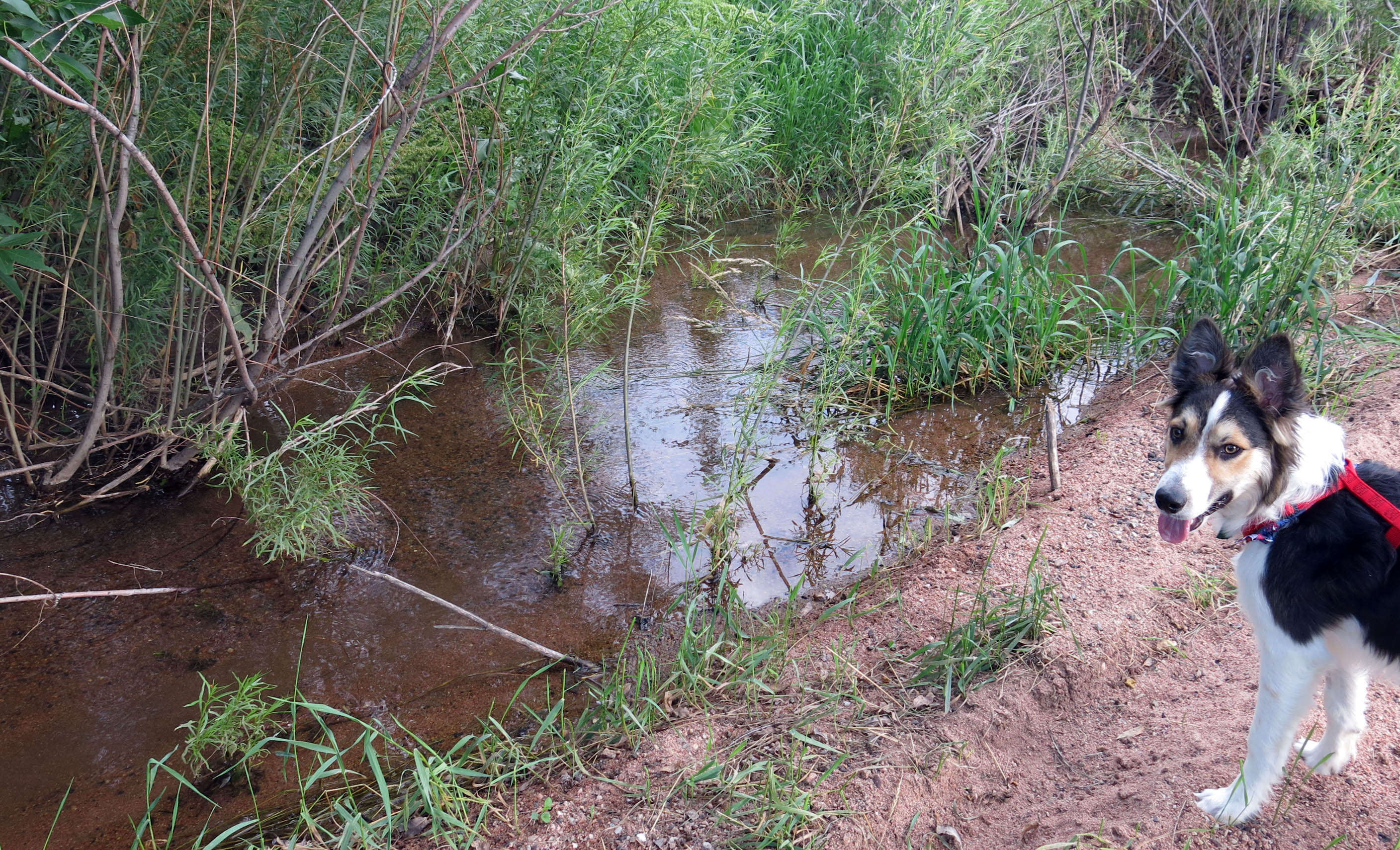 The creek has water in it, too. There’s a place where you can walk right up to it; that is, there aren’t any banks.