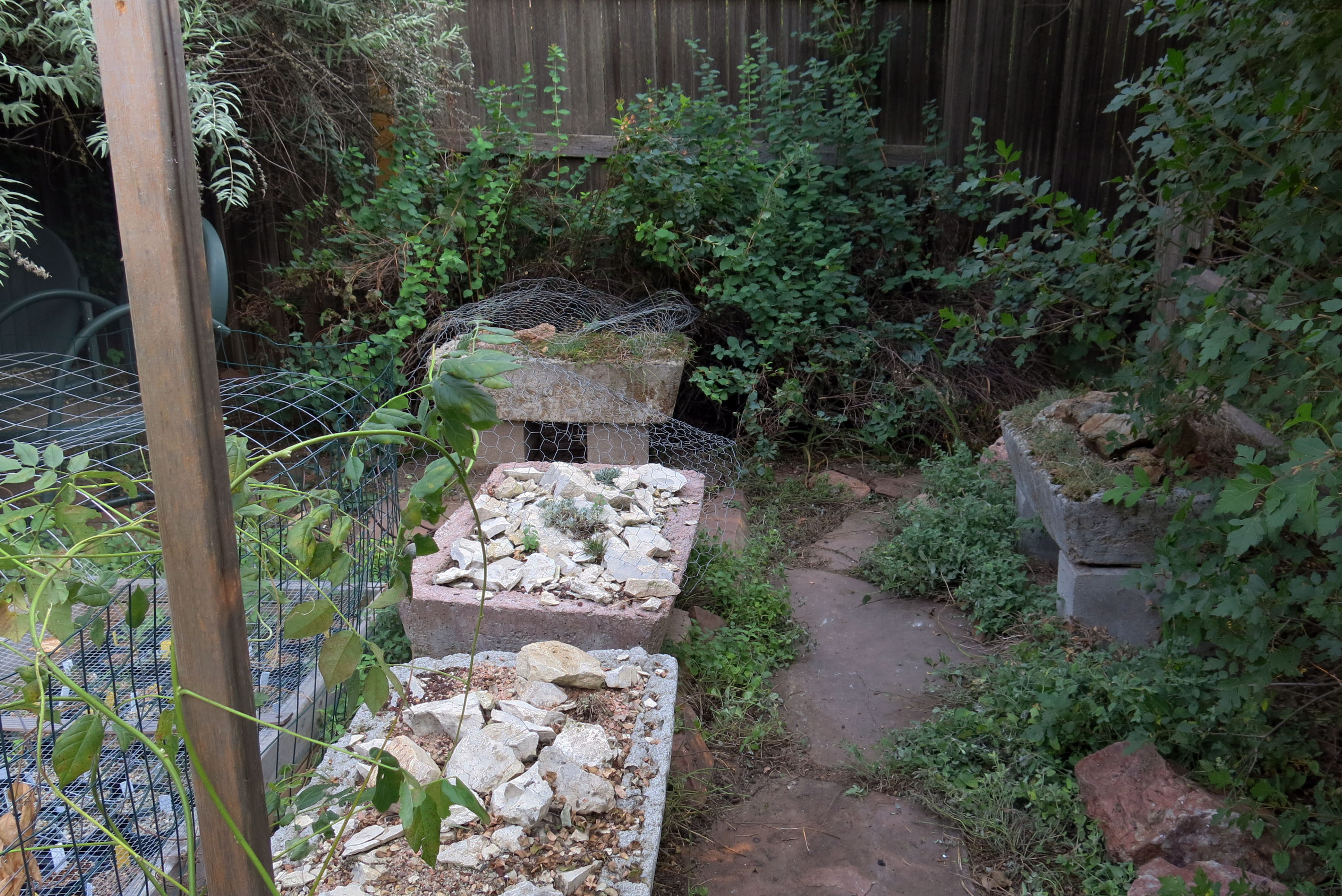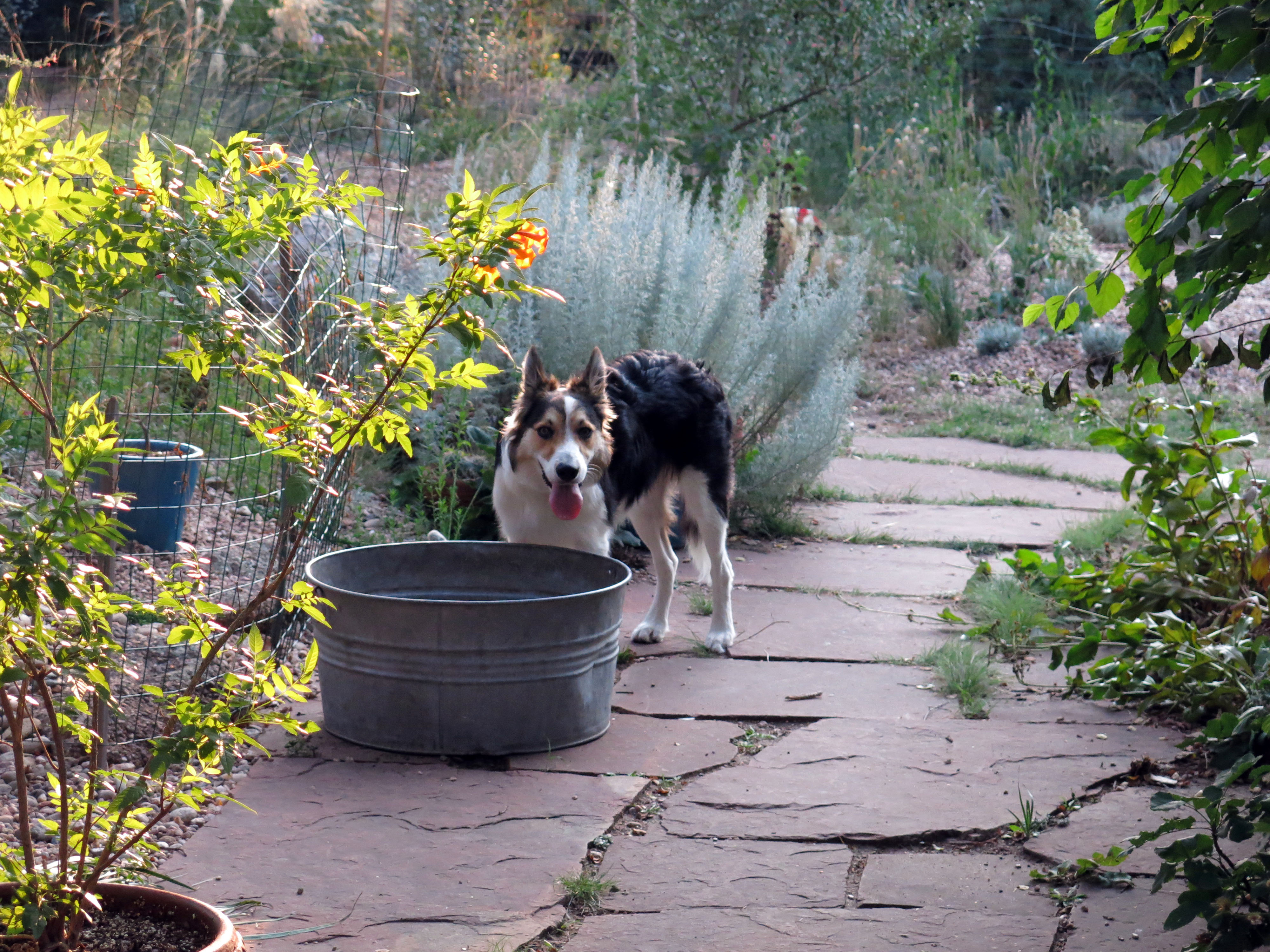 Thanks; the guy I live with says we have enough trouble with neighbors. We like most of them, a lot, but then there are others, you know. Ignoring watering restrictions, throwing trash into the street, riding ATVs in the open space where I go on walks, setting off firecrackers. There’s a list, you see. Quite a list. The guy I live with, who’s getting old you understand, said he’s going to go out into the front yard wearing slippers and shaking his cane at miscreants. Eventually. The burst of activity was the trough moving and picket putting-up. All of this should have been done years ago, but wasn’t, for some reason. Now the guy I live with says he needs a chipper-shredder, preferably an Echo, and will be accepting donations. There’s more stuff to be done, I guess. He’s also mad at me for not finishing my dinner and chewing on pieces of wood instead. And for knocking down a bunch of asters while searching for a snake I never found. It never ends.