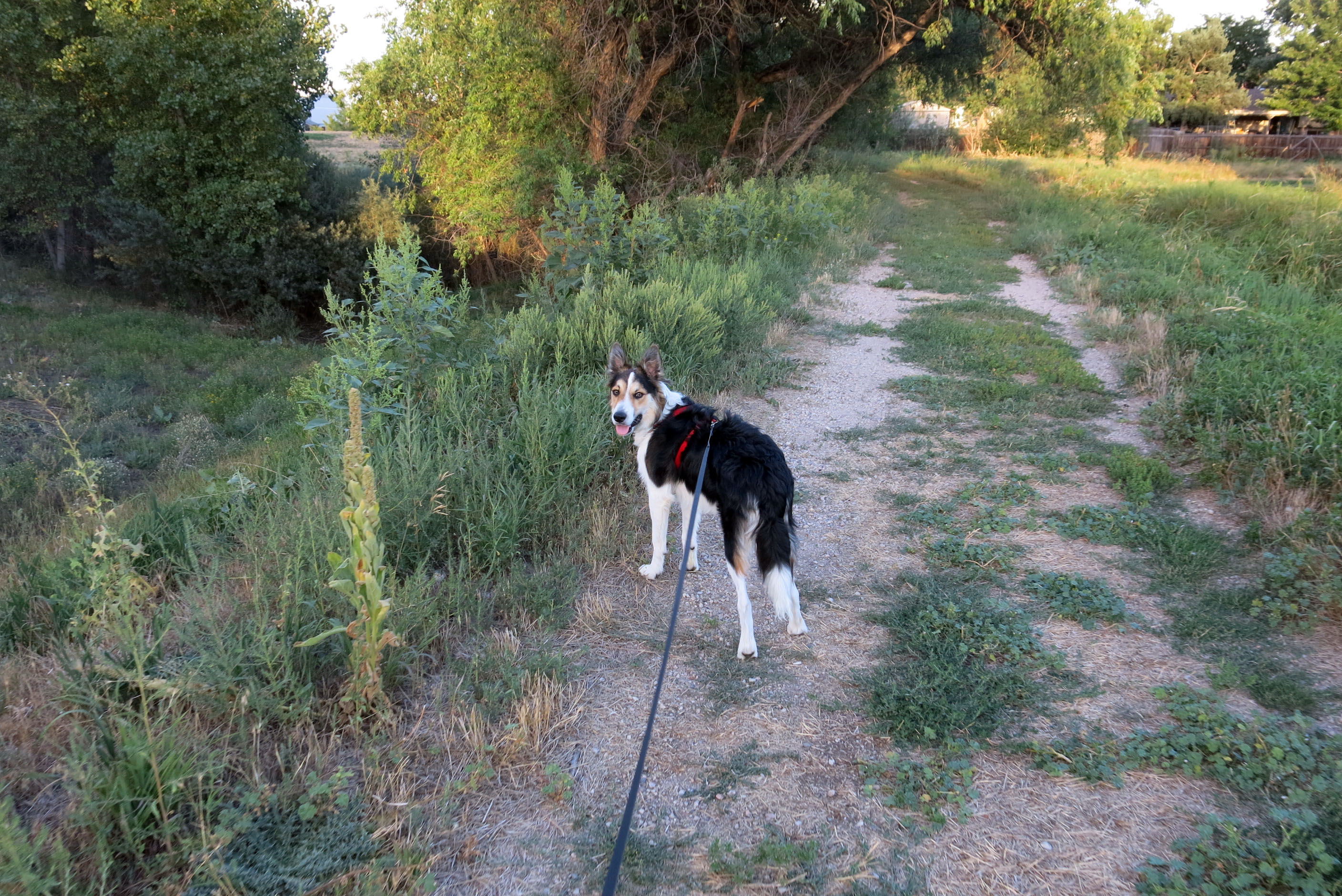 The guy I live with says that he used to walk down the creek path with the border collie who lived here before me, whose name was Chess (maybe you knew him), but that last summer they didn’t walk there very much, and so the trail is overgrown, but that when the grass dries down we’ll blaze a new trail, so I can walk all the way down and back. It sounds pretty good to me. I’ve been part way down, but it was hard to walk, because of all the grass.