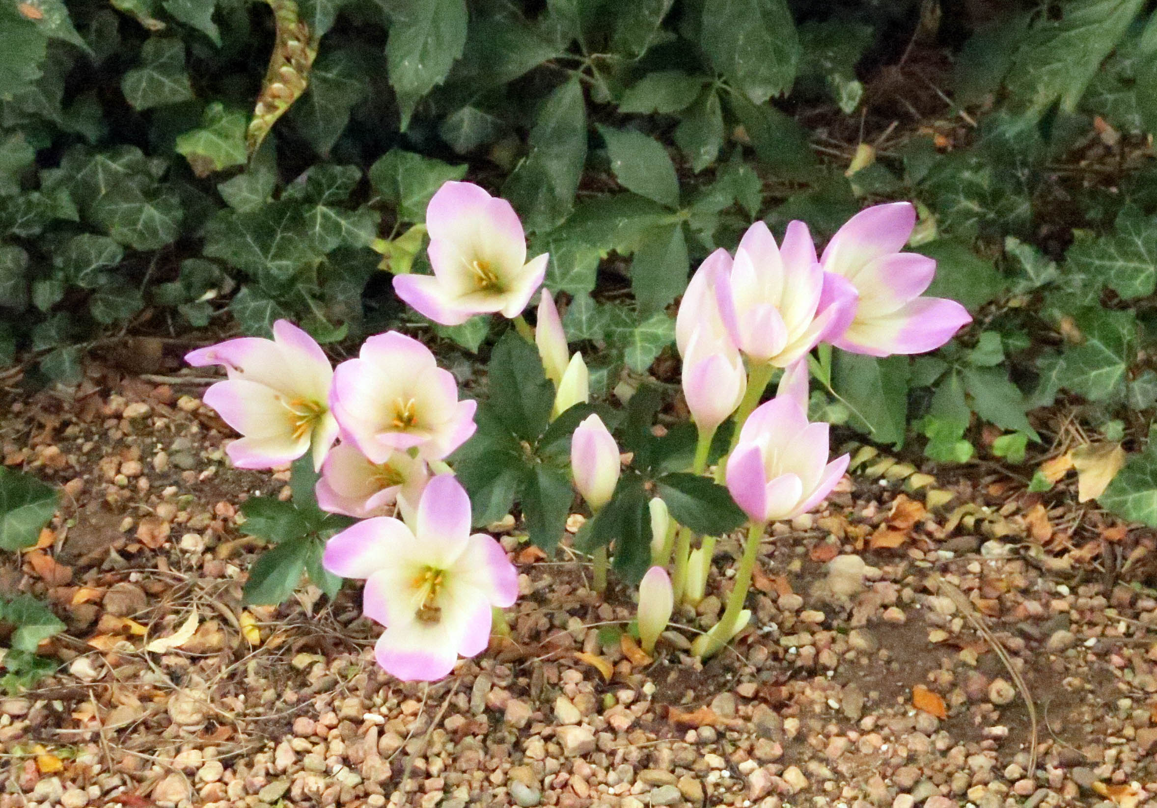 I can’t understand why he didn’t give you any, Mani. We had a cat once who loved cantaloupe, the scent would wake him up out of a deep sleep. He would sniff the air before his eyes opened. It’s quite a bit more expensive now. Someone told me the antidepressants made it like you can’t feel anything, good or bad. I’m glad they’re gone. So not too many cookies, etc. now but I believe Brie is okay. We had a kitty with diabetes but he did okay with it. Sorry too much talk about cats I guess but perhaps you like them Mani? Ugh, raccoons. They always have more on their minds than just eating leaves….What are the little ivy like leaves near the colchicums? Maybe it’s actually ivy but isn’t it too dry there?