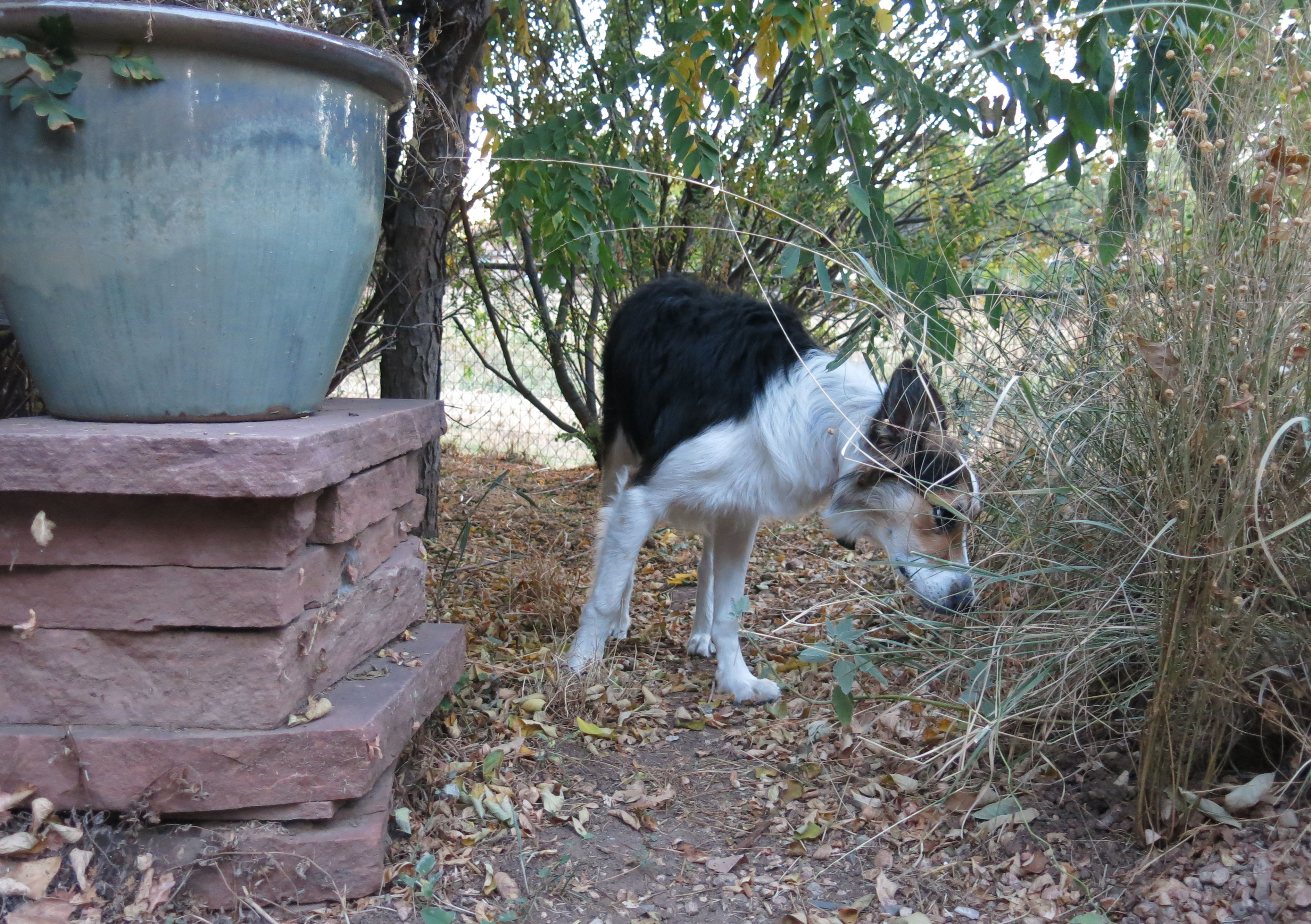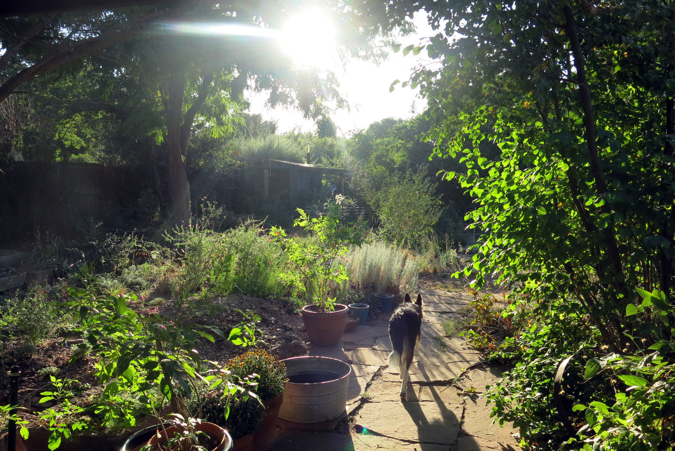 My education continues. This time it’s vocabulary which of course can always be improved. How nice to have something blooming in November but it looks like you’d really have to keep watch what with the leaves all over. That last shot looks like the garden in springtime. I think the sun through leaves is almost my favorite thing about gardening. A lot of people don’t even notice. Another nice thing is the sun gleaming on a dog’s shiny coat, right?