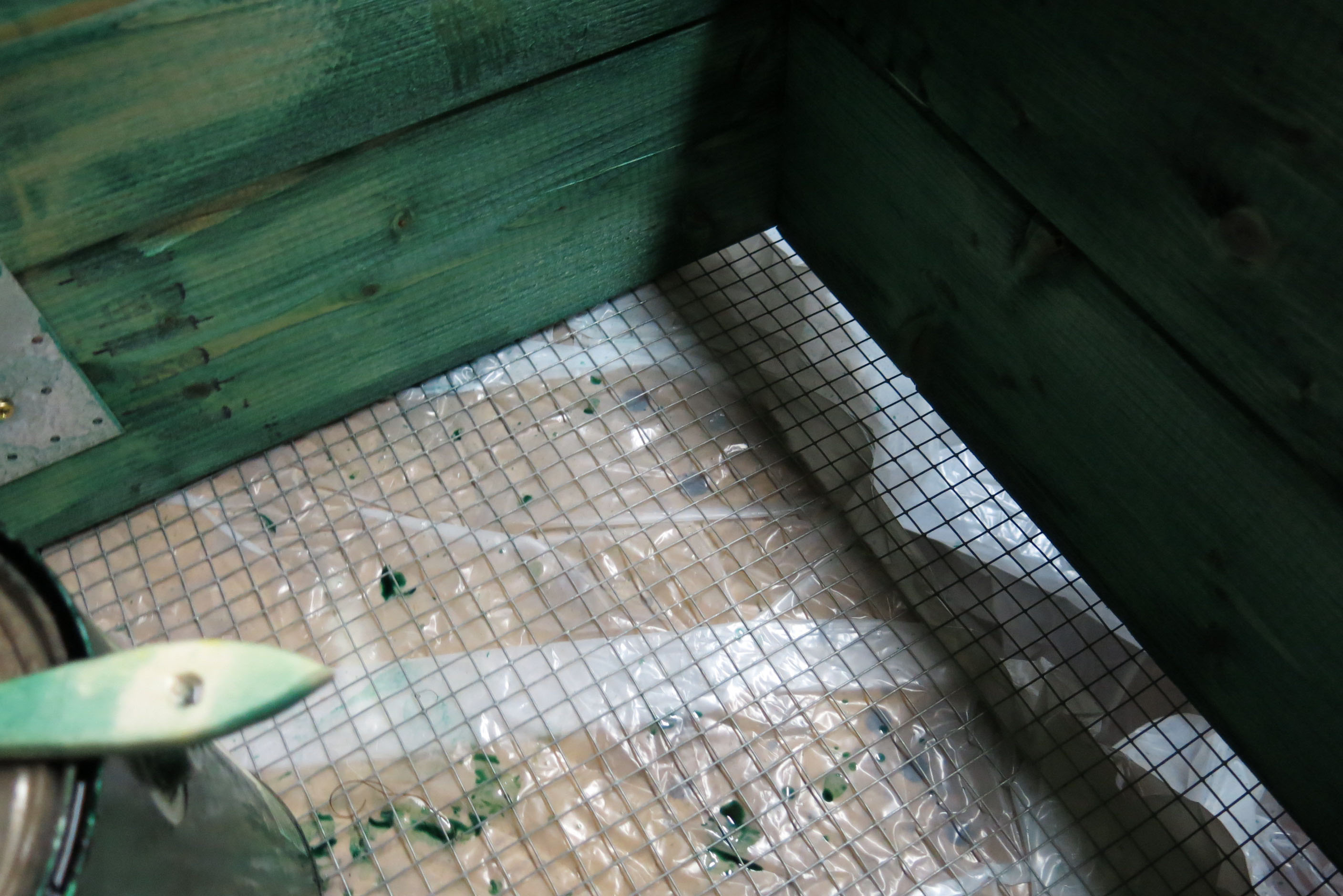 Then the hardware cloth was tacked to the bottom of the boxes, and, believe it or not, nothing happened when he did that, except a bunch of tacking. Like there wasn’t any yelling or cursing inanimate objects, or bleeding. None of that.