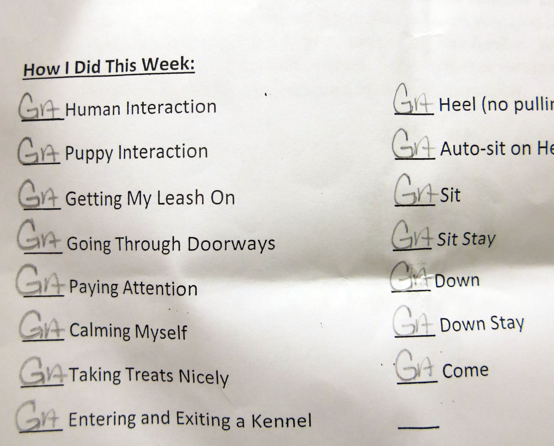 To sort of cancel all that out, I, according to the trainer at Day Care, had “another fantastic week”, and I have the report card to prove it. “Grt”, if you didn’t know, means “great”.