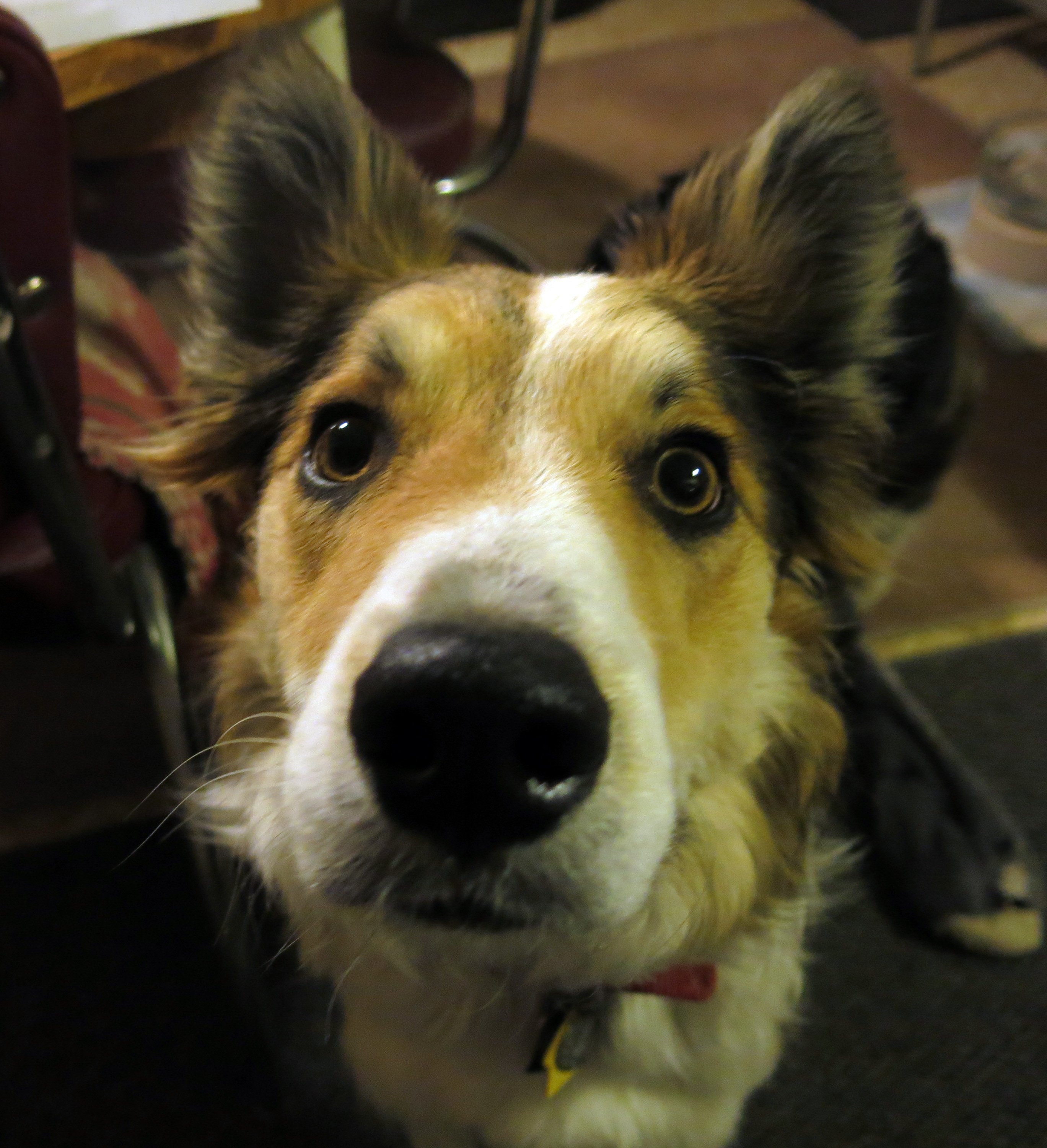 Darling Mani, Norm and Celeste’s cousins–let’s call them Bob and Selene– live across the freeway and up the hill from us, and they visit our neighborhood on Tuesday night — Wednesday mornings being trash pick up day. We have has some close encounters, but, for the most part, they just trot up the street busy doing whatever a four-legged urban couple of their ilk do. Of course, if any of us were Border Collies, it would be a much more interesting story.