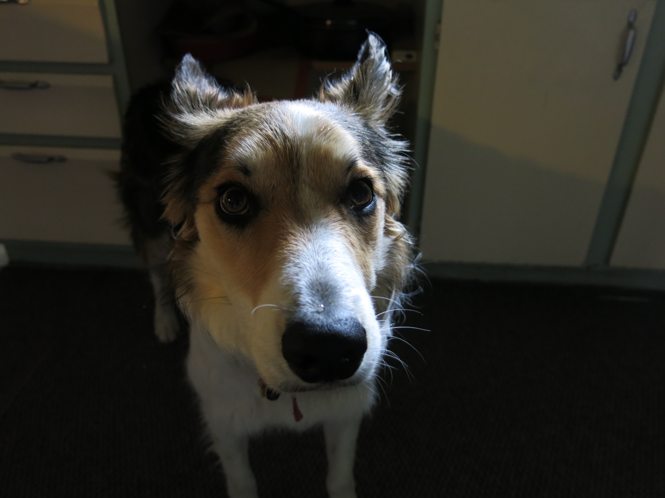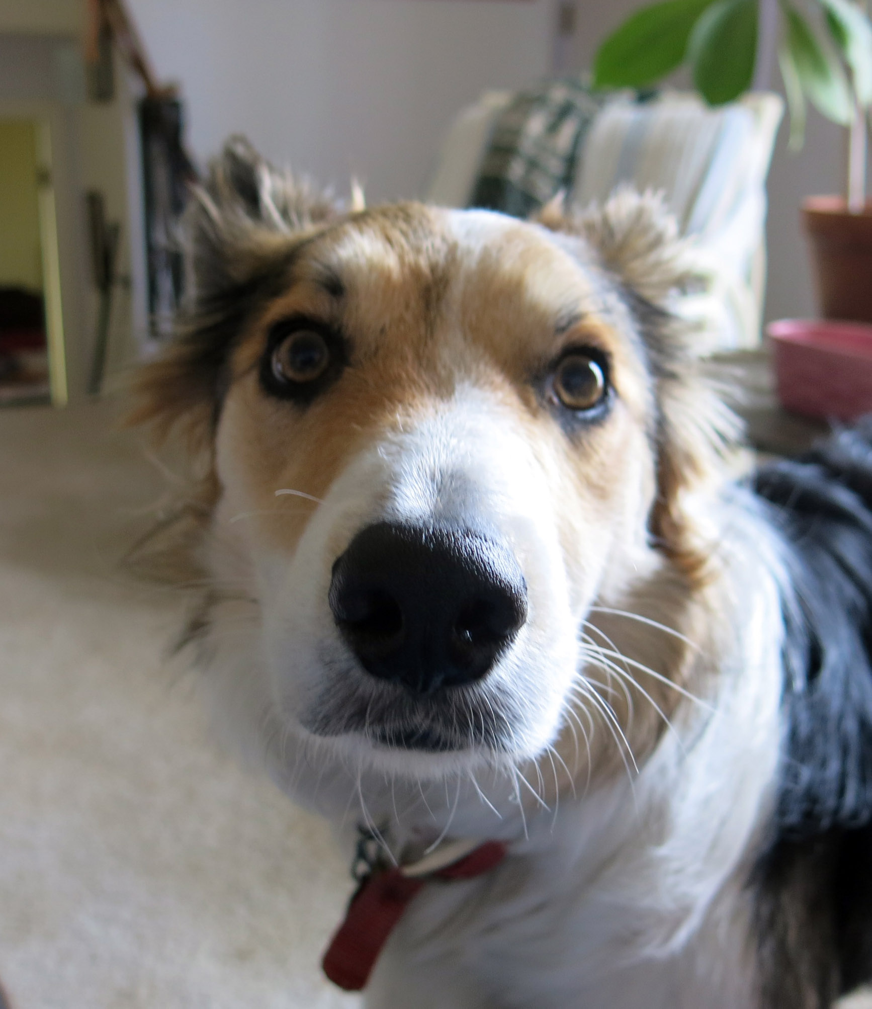 I’m actually much taller than he says I am, pretty much normal-sized, but Slipper, who lived here before me, was an “incredibly huge” purebred border collie, and Chess, who also lived here before me, was “kind of a fatty, though quite squeezable”, so I guess I seem small.