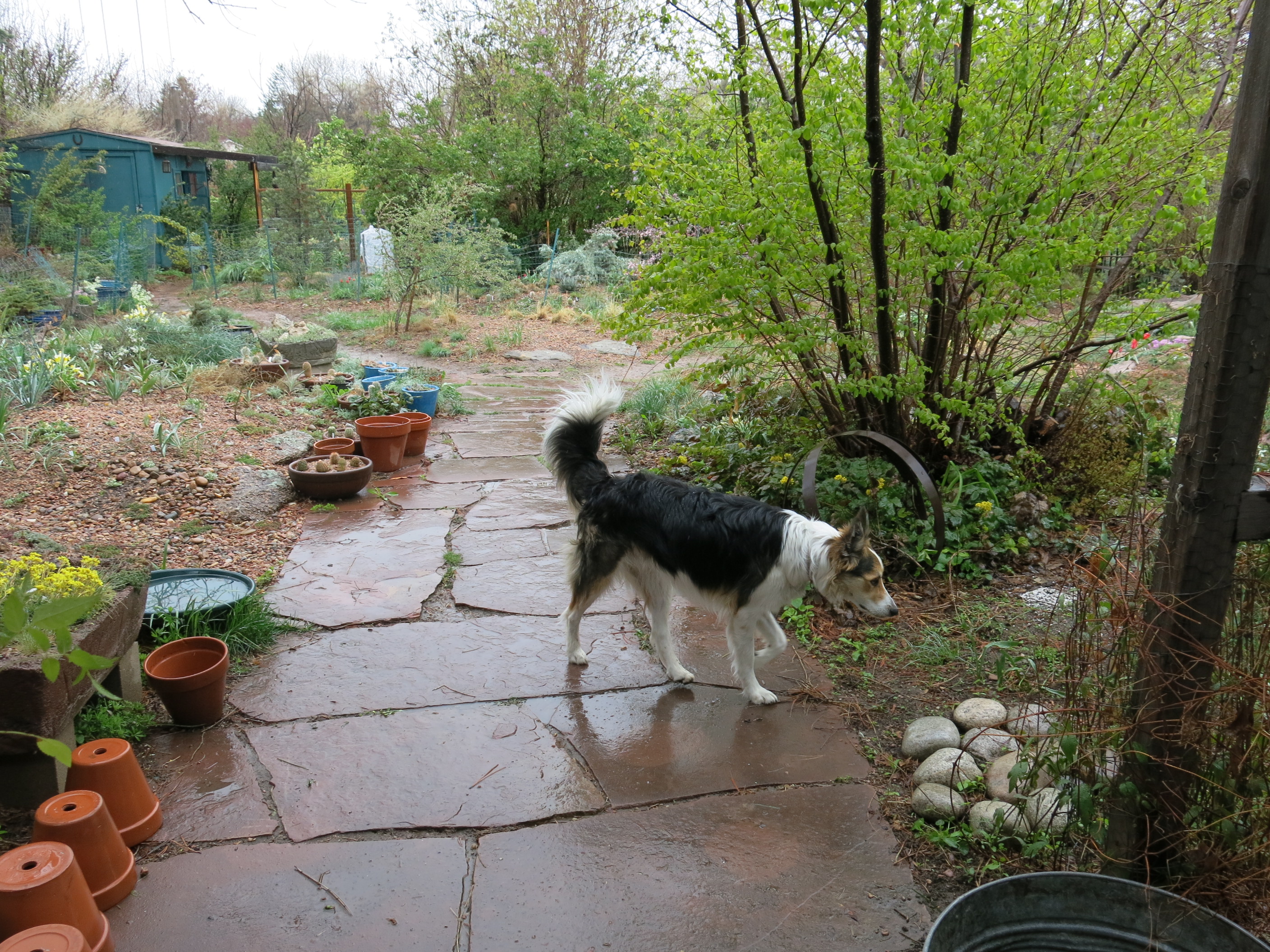 Greetings and salutations, everyone; yes, once again it is I, Mani the slightly small purebred border collie, filling in for the guy I live with, and here to bring you the latest dismal news from our garden. You may remember me from such equally dismal posts as “The Blizzard”, among at least a couple of others.