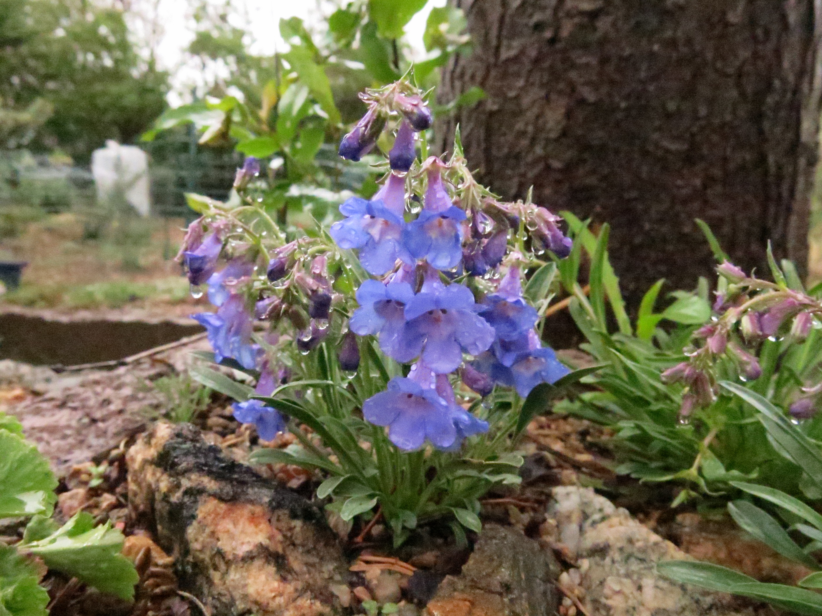 And there’s a penstemon flowering in a trough. Penstemon uintahensis. From the Uinta Mountains in Utah. (The only high-elevation east-west mountain range in North America.) It’s close to the Uintah Basin. Why the spelling changes, I don’t know. The guy I live with says for the range, they ran out of the letter H that day.