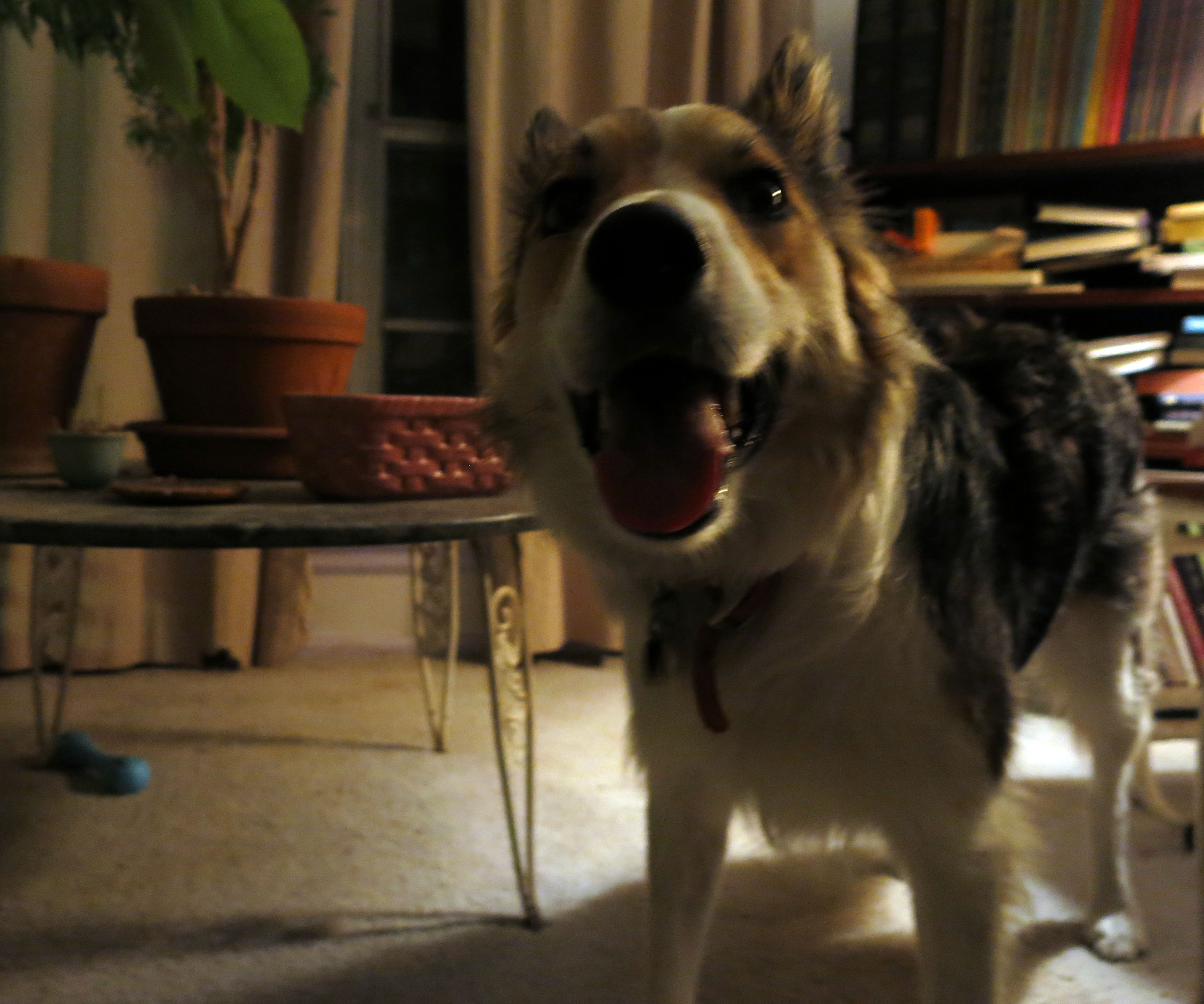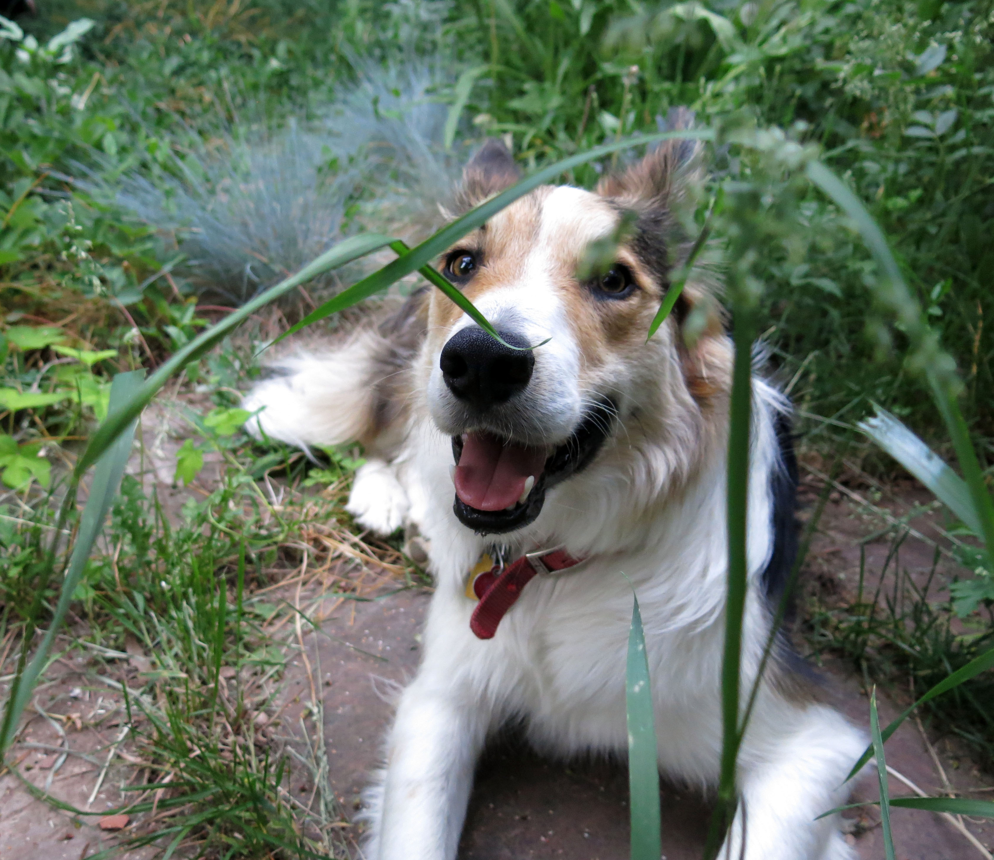 Greetings and salutations, everyone; yes, once again it is I, Mani the fairly regular-sized, but I like to think cuddlably small, purebred border collie, filling in for the guy I live with, and here to bring you some very mysterious news from our garden. You may remember me from such posts as “The Upended Breakfast”, among so many, many others.