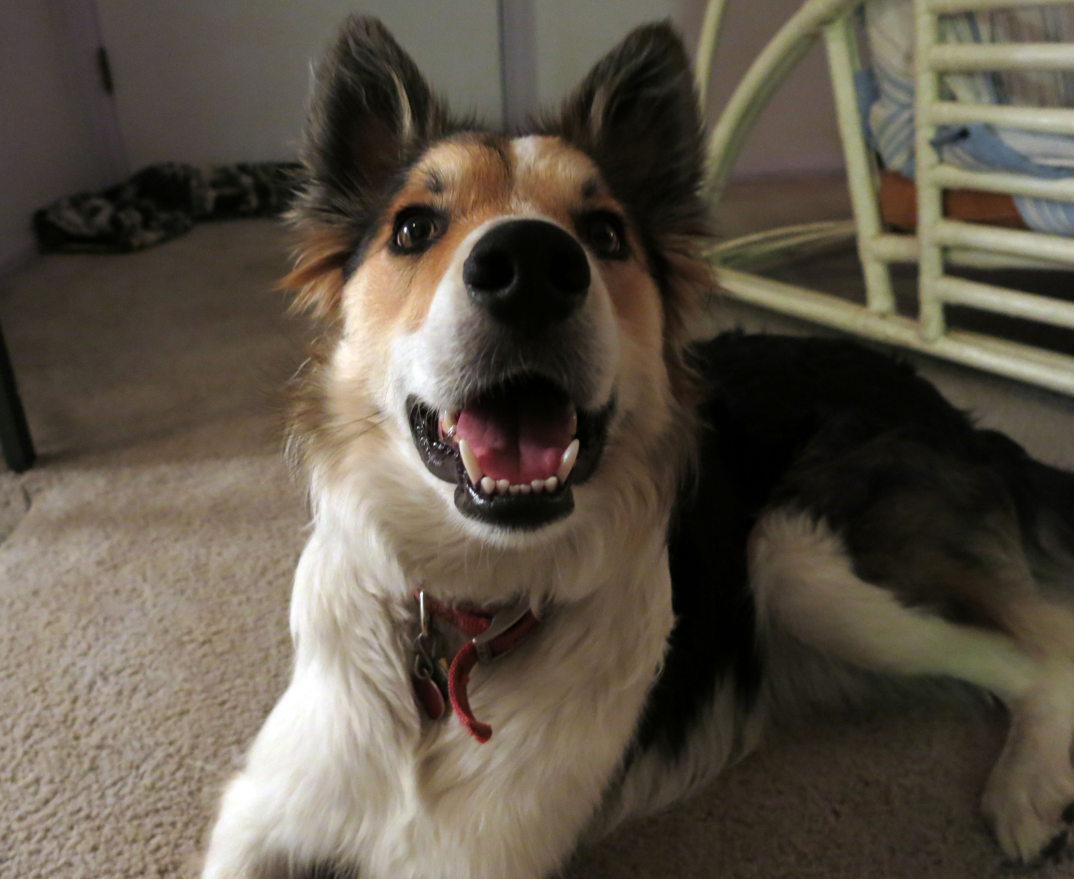 Here I am in a characteristic pose. The guy I live with put some of my toys on top of his head. He’s really weird.