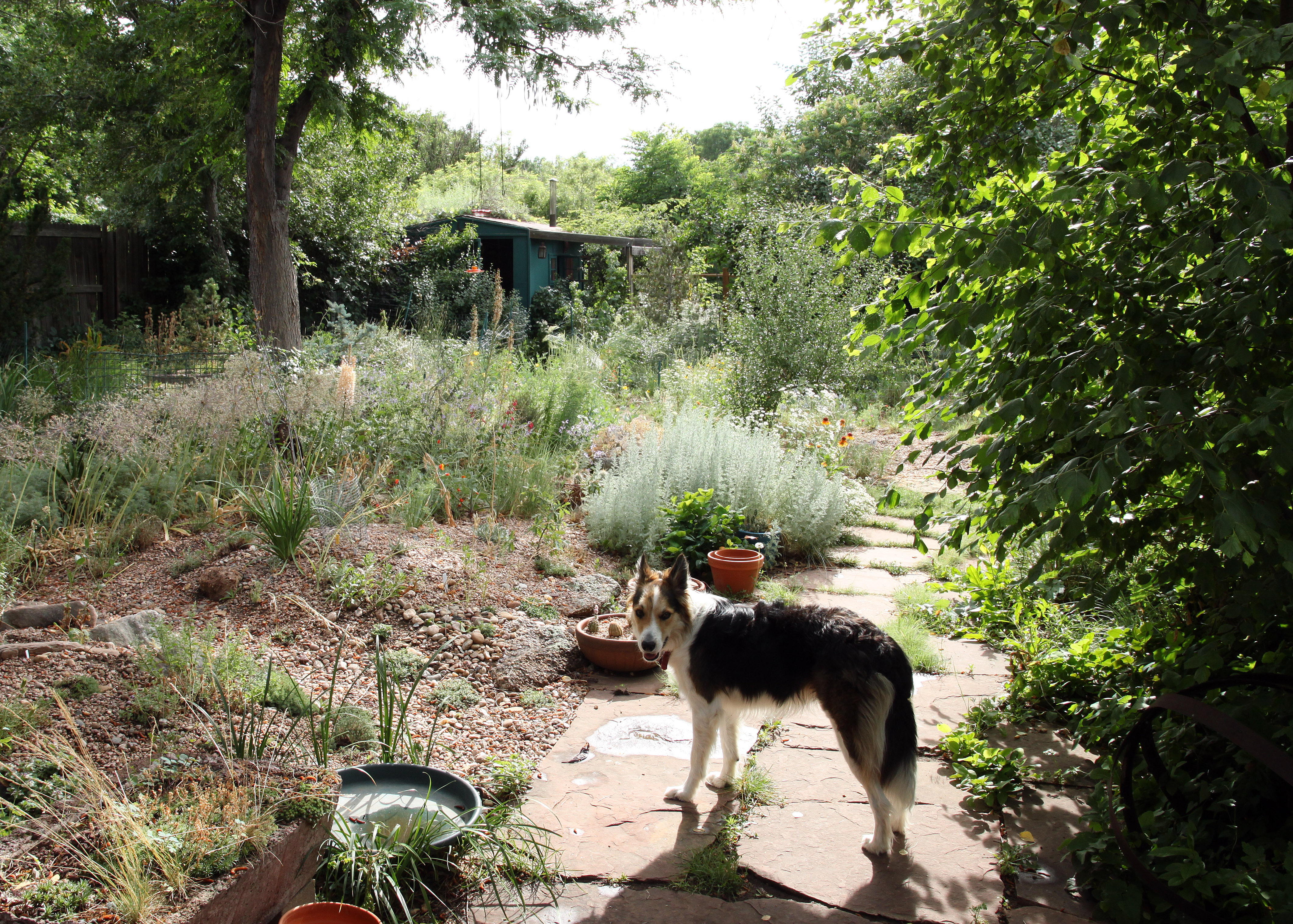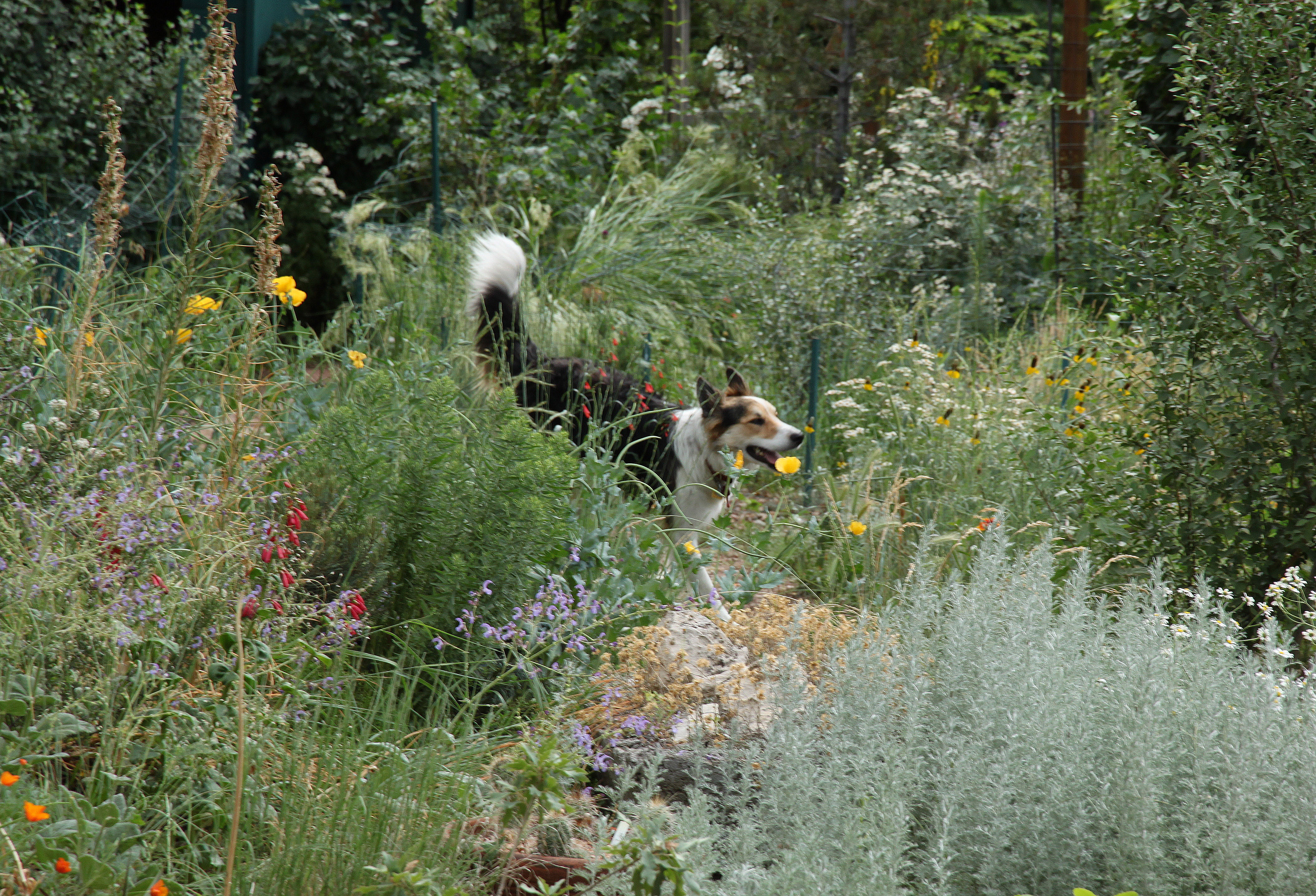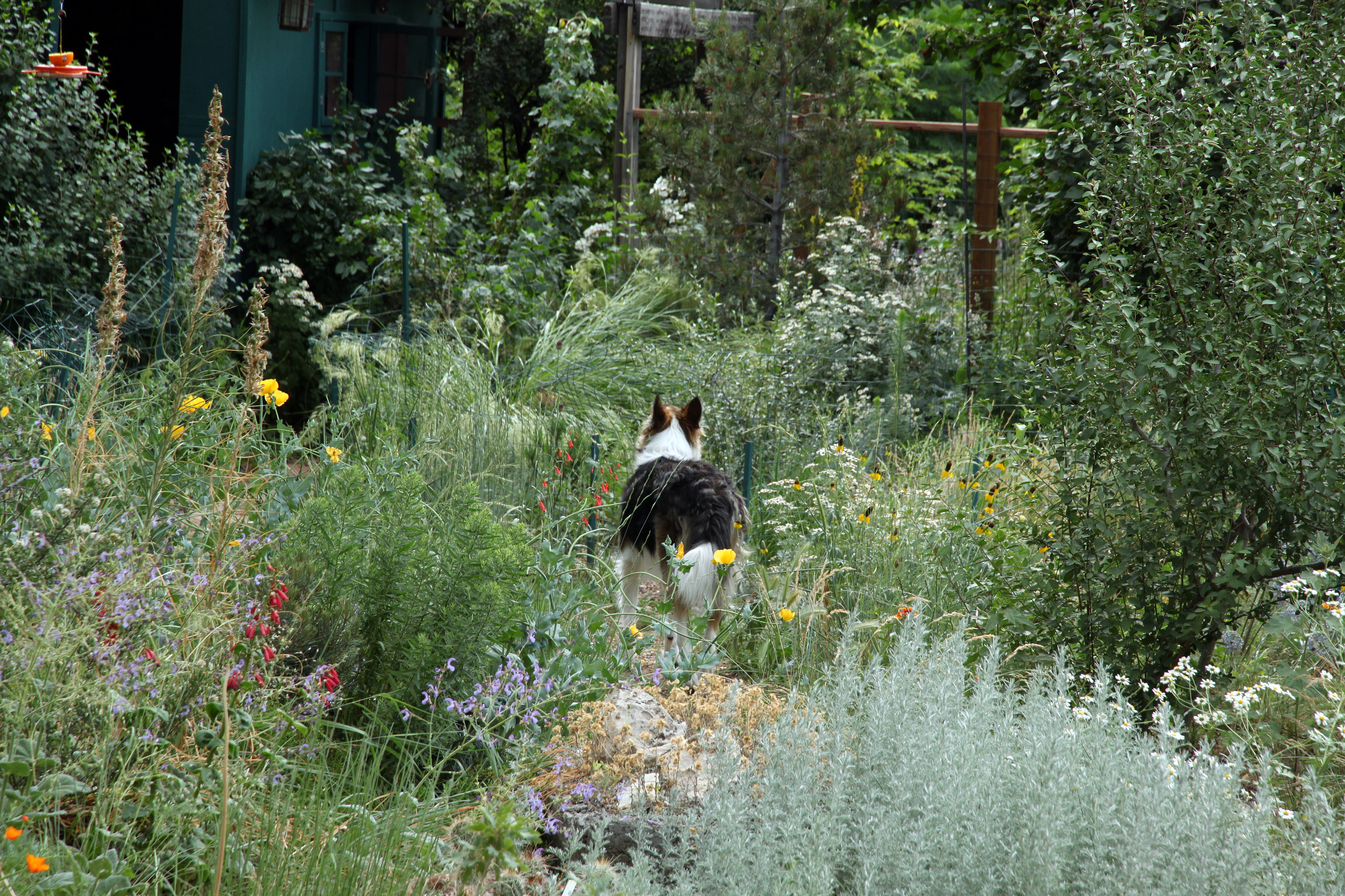 Greetings and salutations, everyone; yes, once again it is I, Mani the smaller-than-huge purebred border collie, filling in for the guy I live with, and here to bring you the latest news from our garden. You may remember me from such posts as “Hazy And Jungly”, among so many, many others.