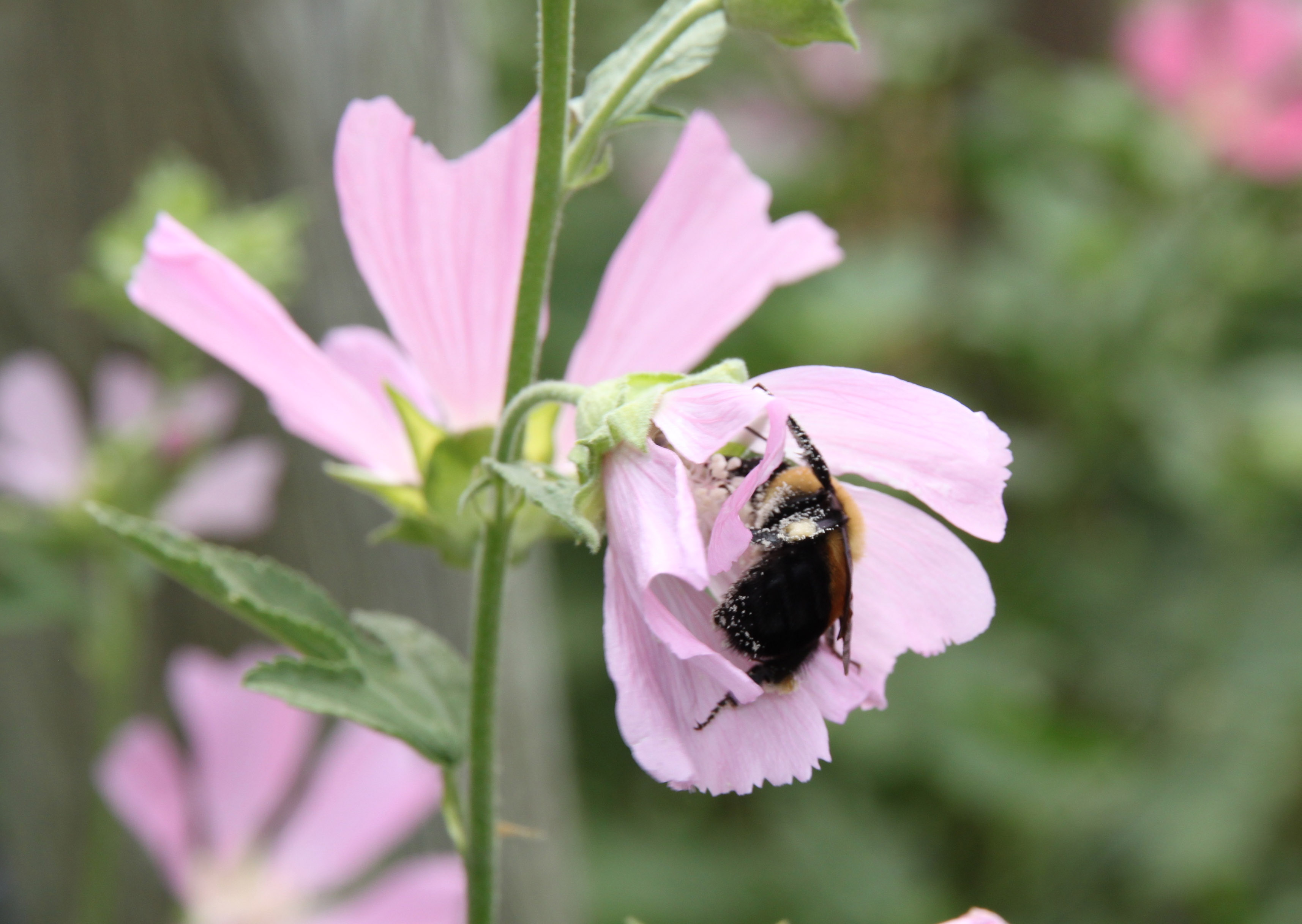 In the “way back”, there are a lot of plants of Lavatera thuringiaca flowering now. They sow themselves all over the place, I guess.