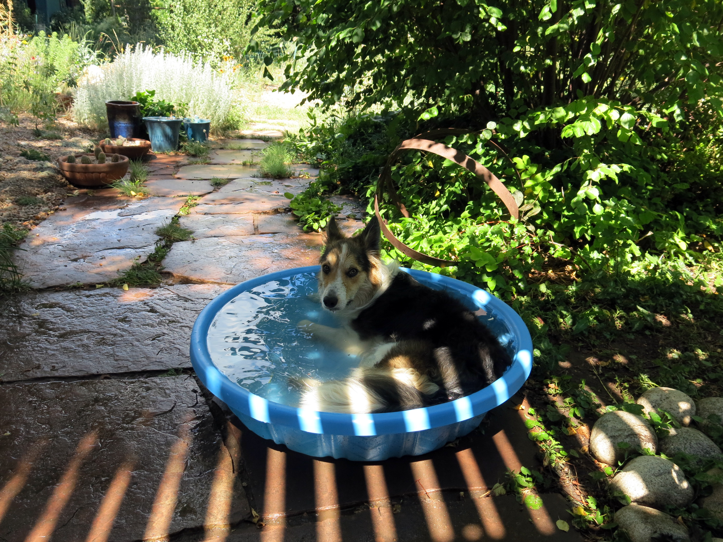 Meanwhile, I figured out what to do with the pool that showed up here a while ago. The guy I live with posted a picture of me on Facebook a couple of days ago, but this is an even better picture, as I’m sure you’ll agree. When it’s this super roasting hot, even beyond super roasting, this is what you do.