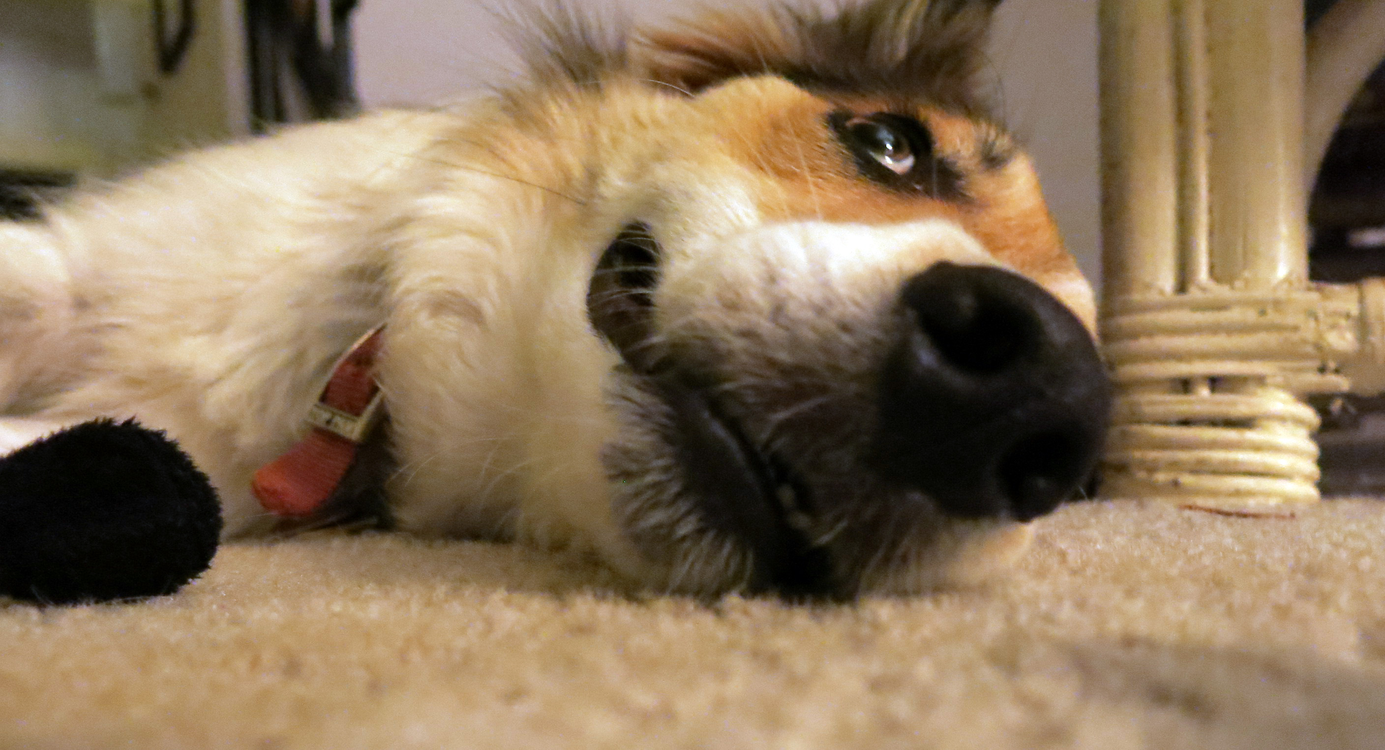 And then I had some trouble with my toe, and had to go back to the vet’s (where Day Care is) today, to have it looked at. They thought something might have bitten me or stung me on the toe, and now I have medicine. The guy I live with made me wear a cone last night, which was no fun at all. But I suppose he does care about me.