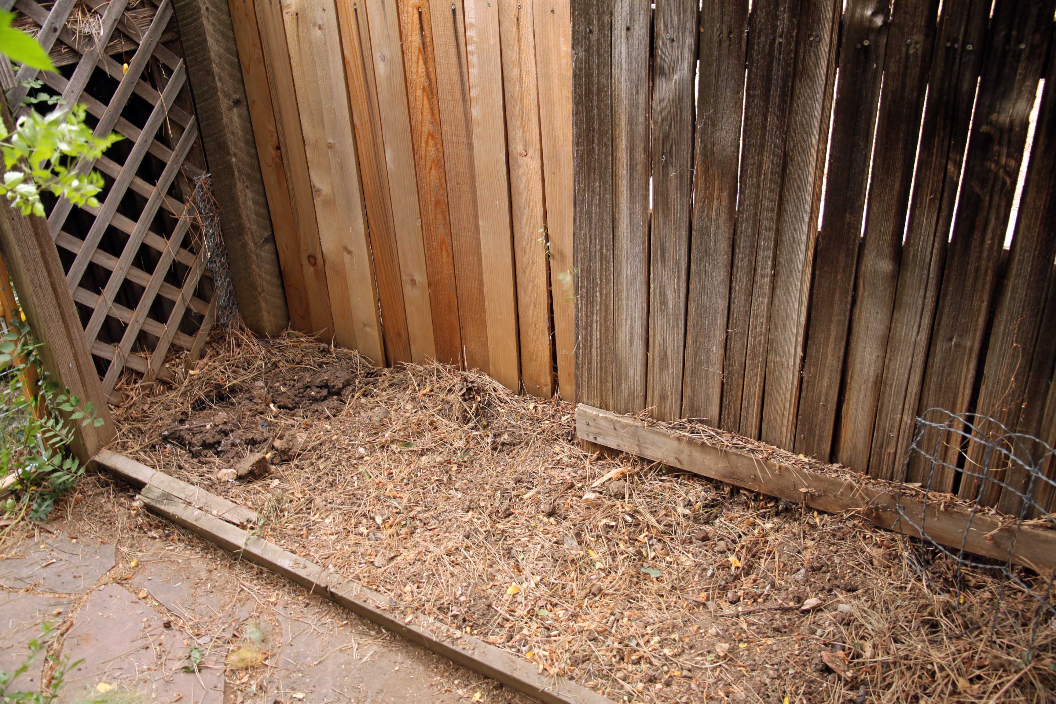 It’s possible that either a great deal of thought will be put into deciding which plant, or plants, will go here (keeping in mind that I need to be able to look through the fence), or that no thought at all will go into the decision, and the guy I live with will just get something, plant it, and the plant will die. That happens a lot.