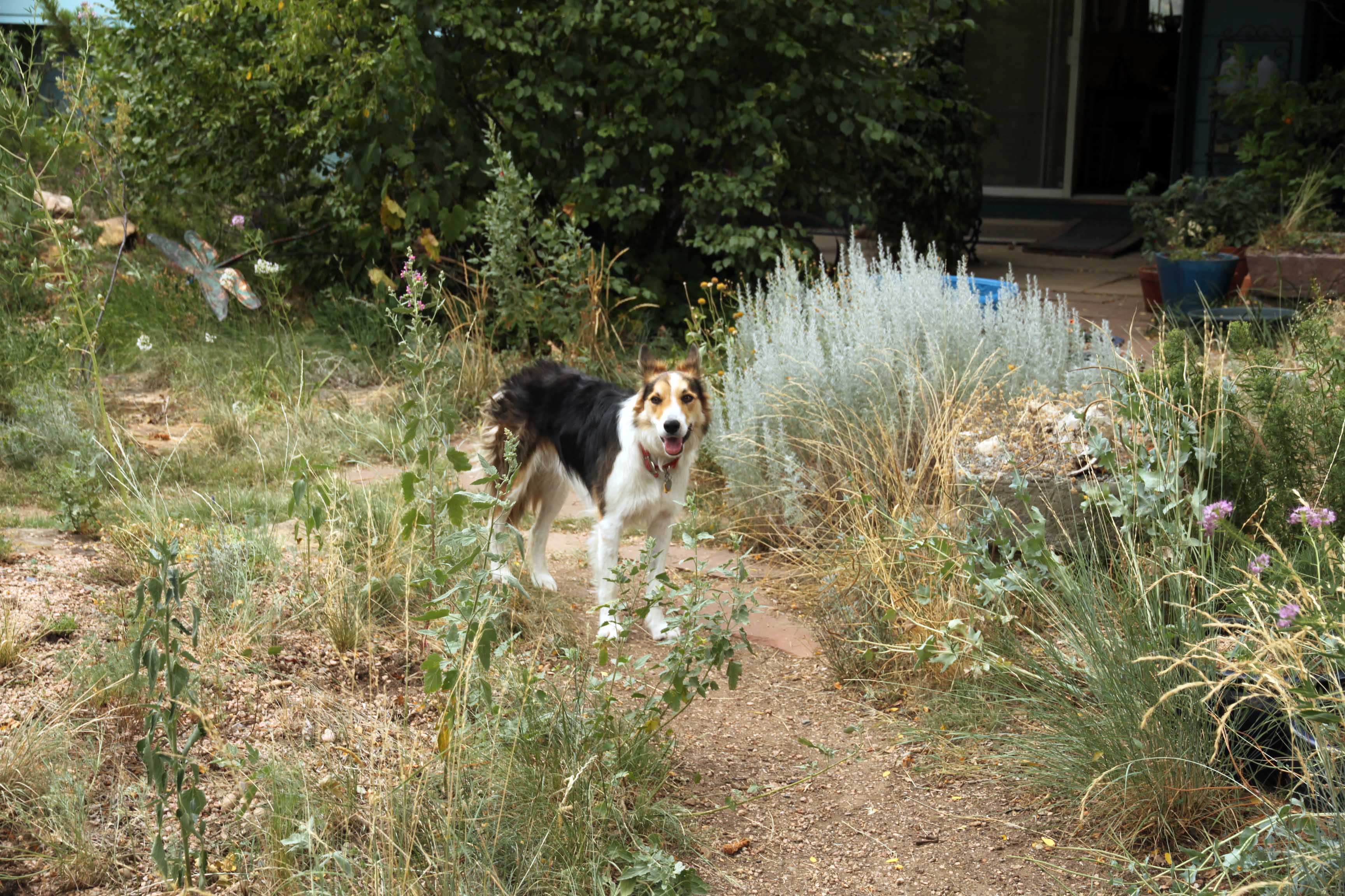Greetings and salutations, everyone; yes, once again it is I, Mani the still roasting-hot purebred border collie, filling in for the guy I live with, and here to bring you more news about our roastingly hot garden. You may remember me from such heat-related posts as “Super Roasting”, among so many others.