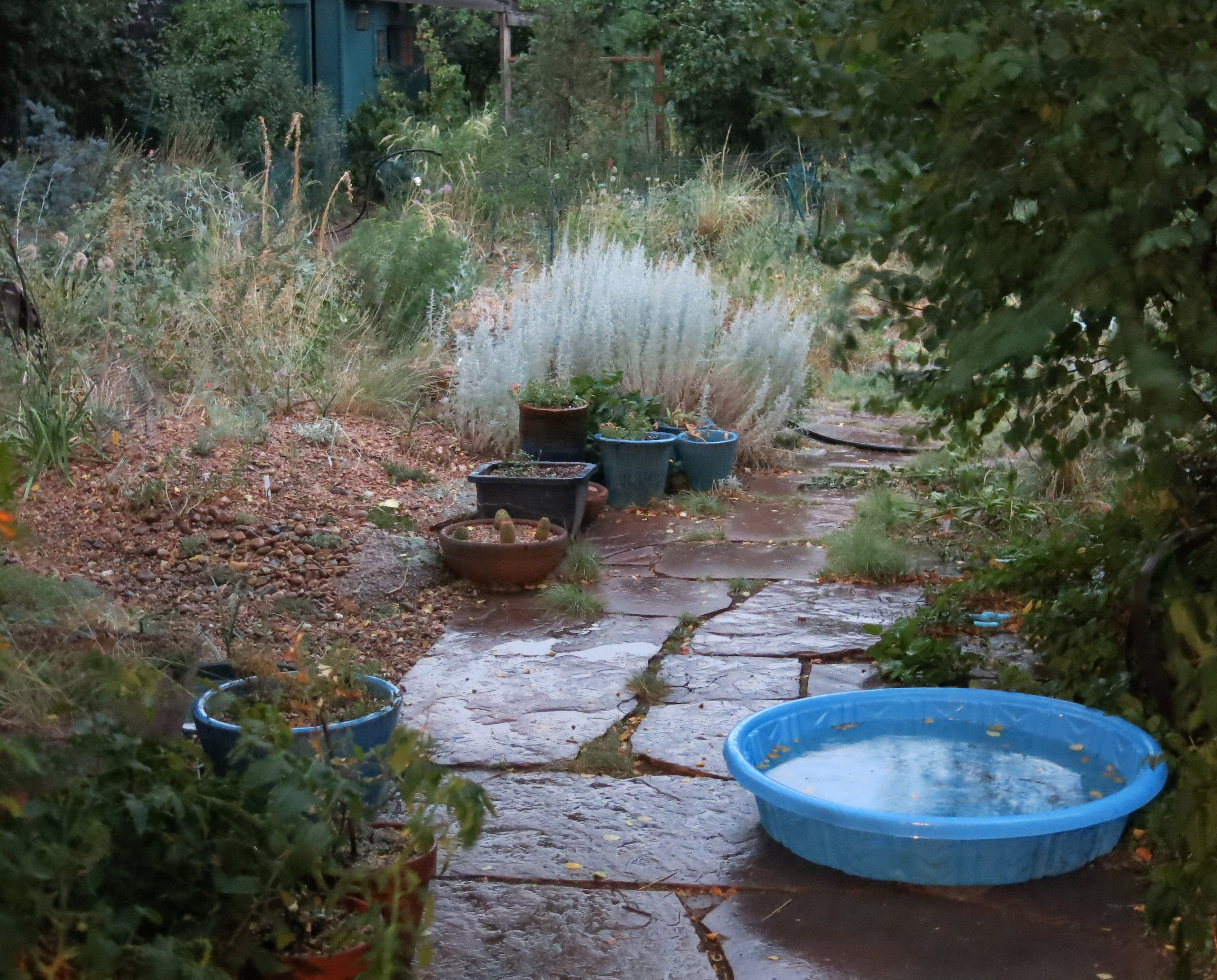 This isn’t enough rain to make the plants happy, but it’s enough to cool things off so I’m not so roastingly hot. And that’s what really counts.