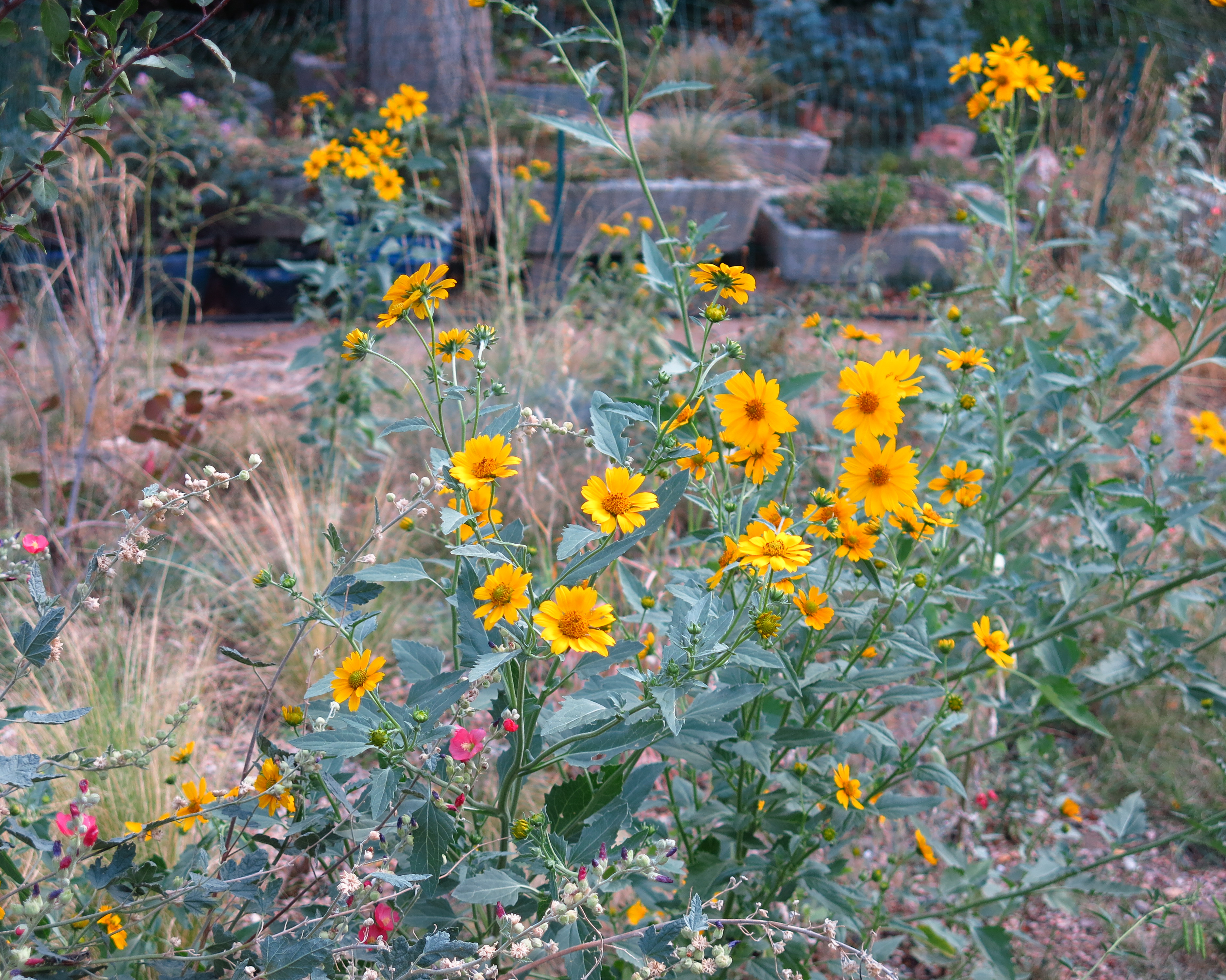 The guy I live with decided to do some watering. The cow-pen daisies perked up right away. It’s not supposed to rain any time in the near future. “Maybe never”, says you know who, the eternal optimist.