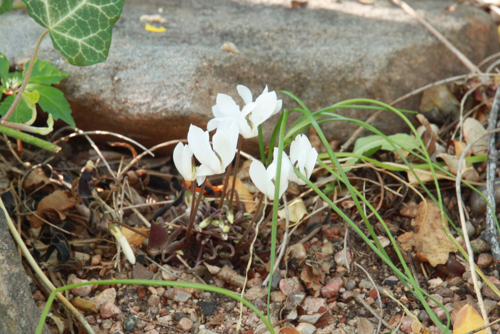 Lots of cyclamen are flowering now. This is probably Cyclamen cilicium. It’s supposed to be fragrant, but the guy I live with said he couldn’t smell anything but whatever the strong chemical fragrance of the hour is, wafting from the neighbors’ house.