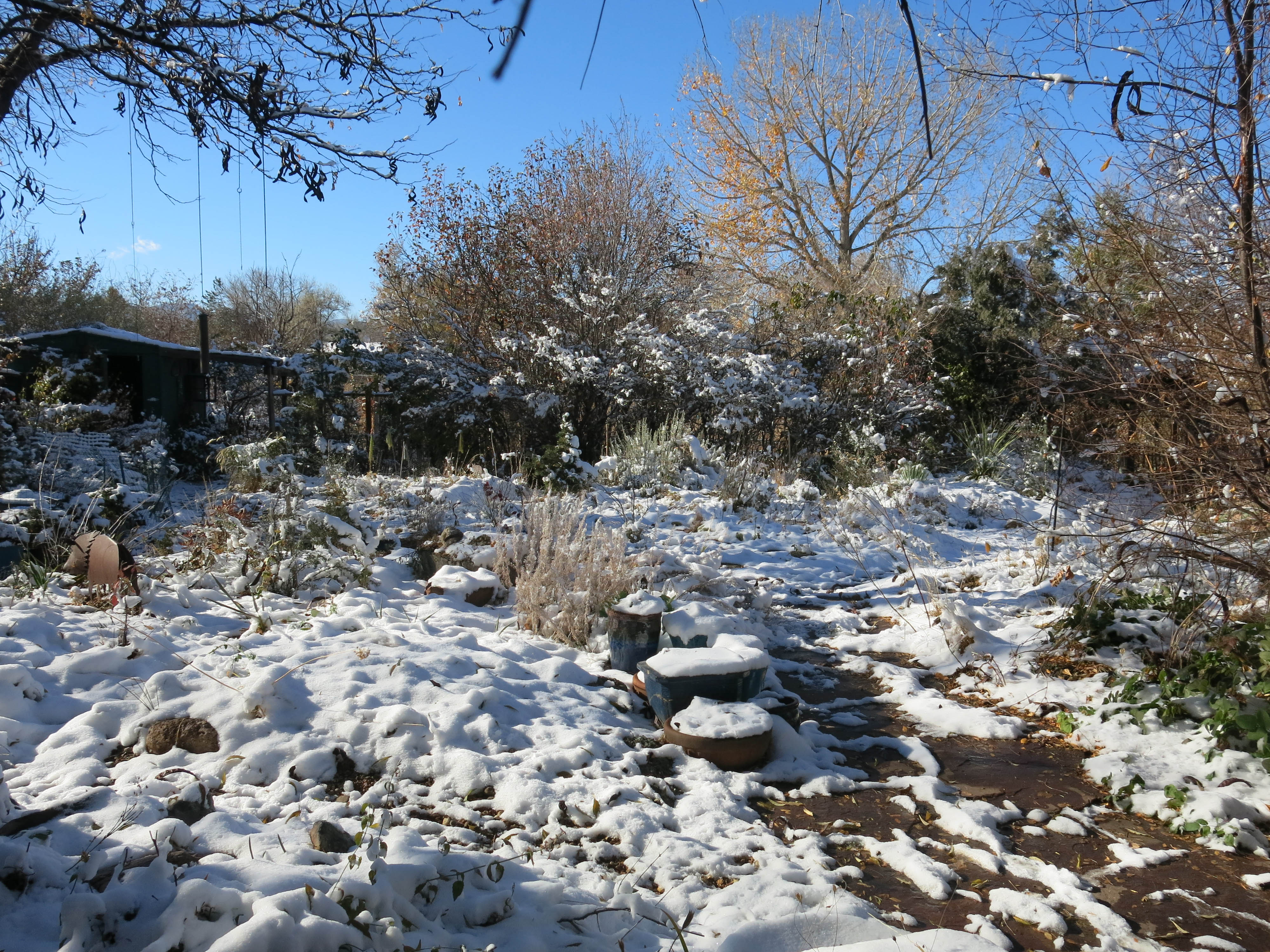 The guy I live with said this was the first time ever that he welcomed snow, because it’s been so dry. He never got a “snow day” when he was in school, and definitely never got one when he worked for the phone company. The snow should be gone by tomorrow, anyway.