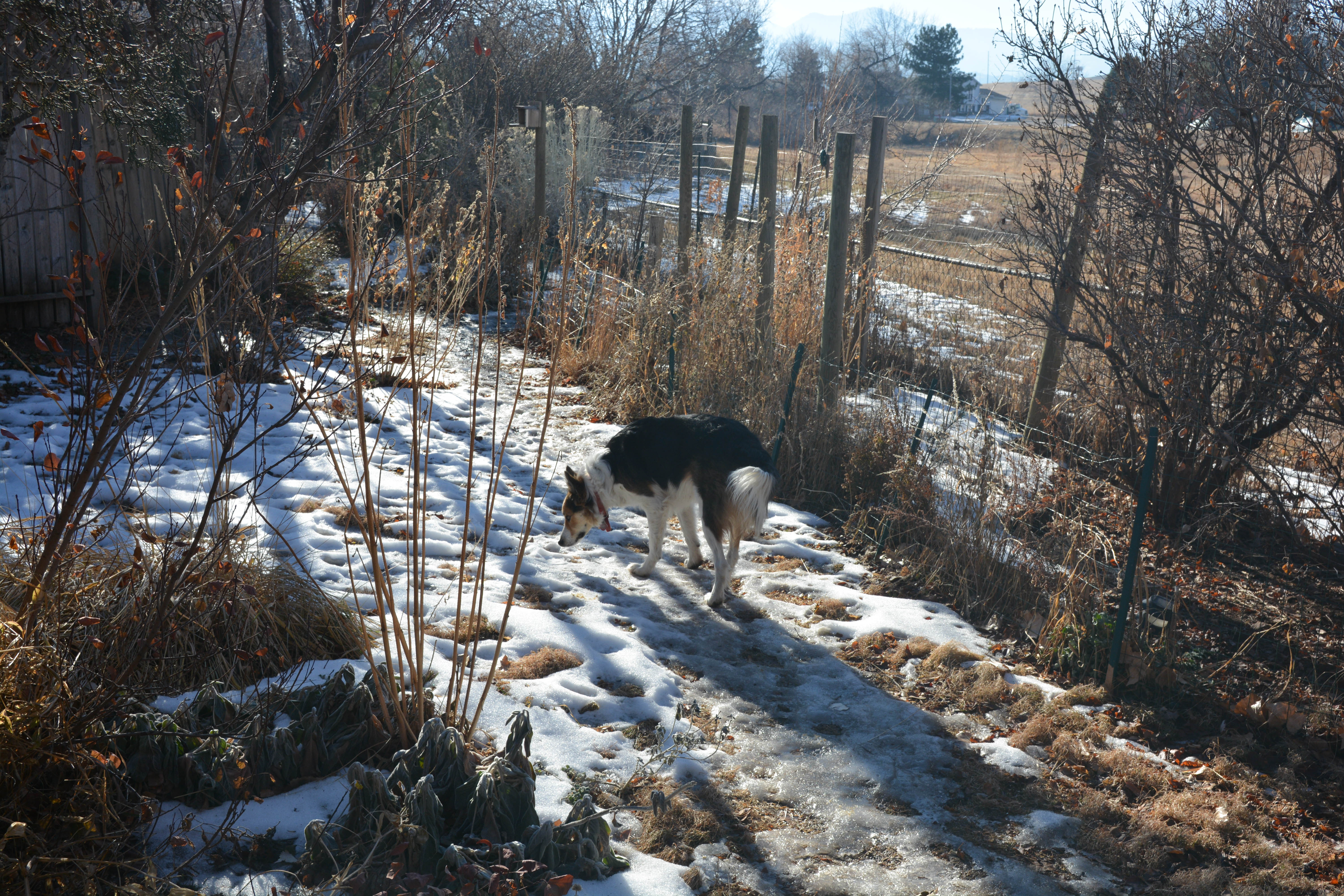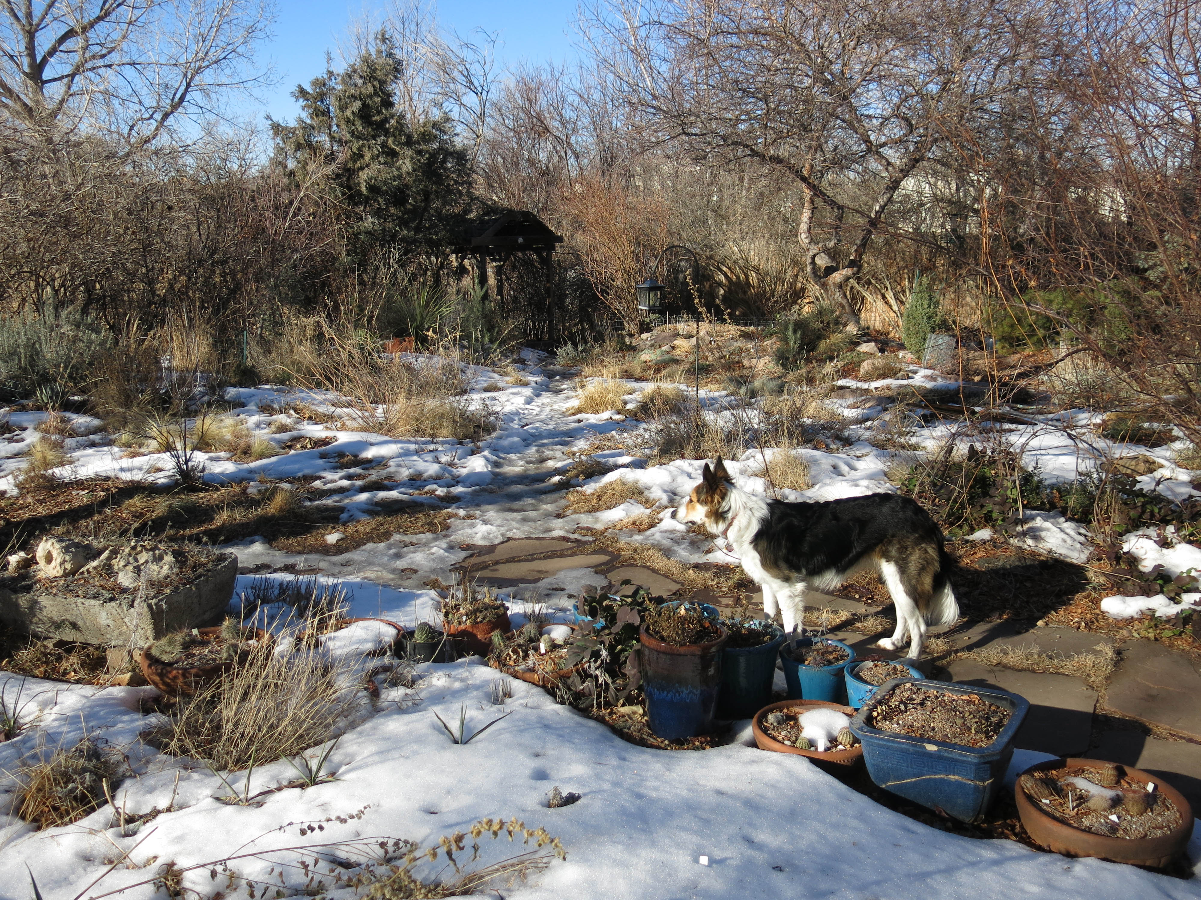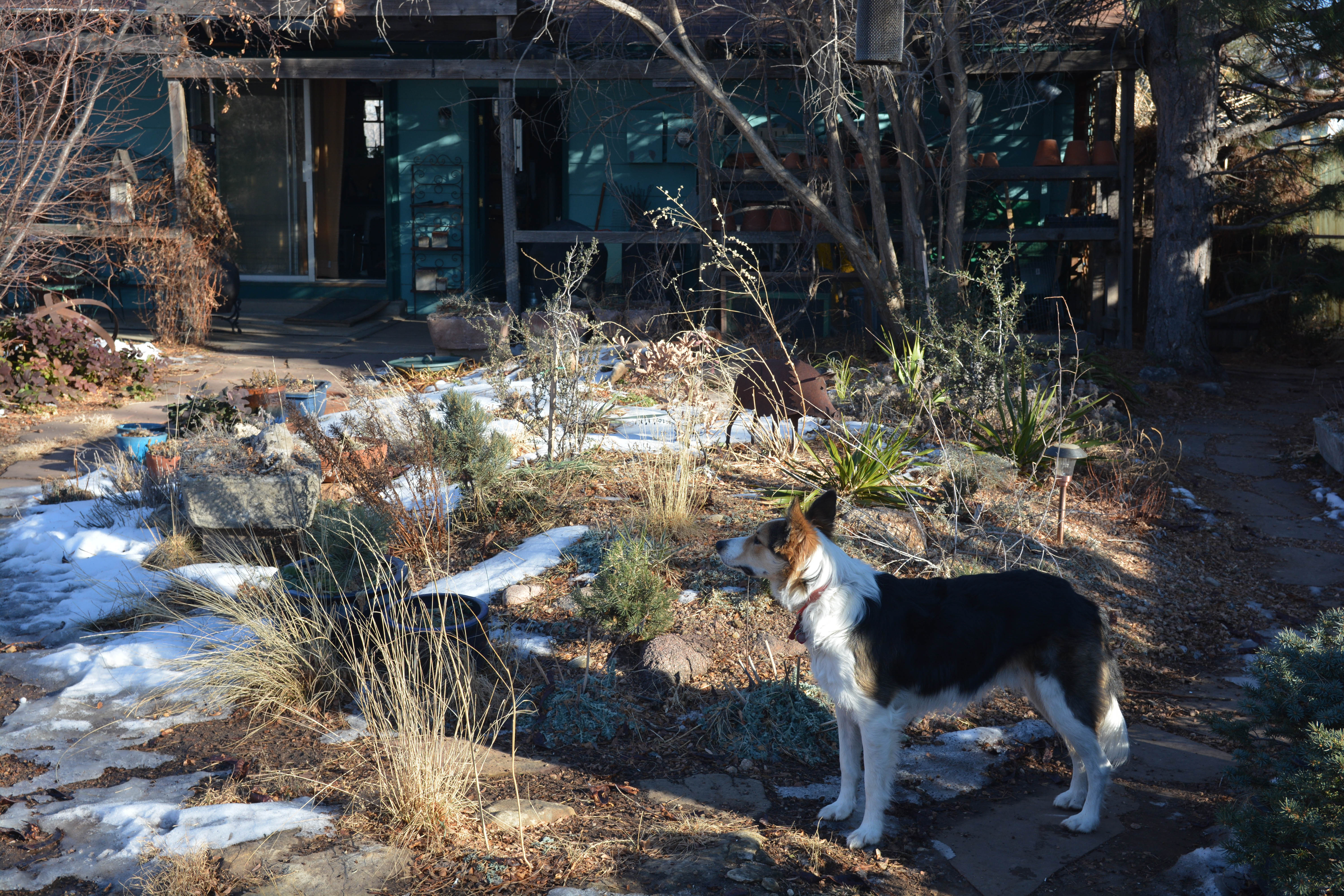 Greetings and salutations, everyone; yes, once again it is I, Mani the purebred border collie, filling in for the guy I live with, and here to bring you the latest news from our garden, and, of course to wish everyone a very happy New Year. You may remember me from such posts as “An Almost Antlerless Day”, among so many, many others.