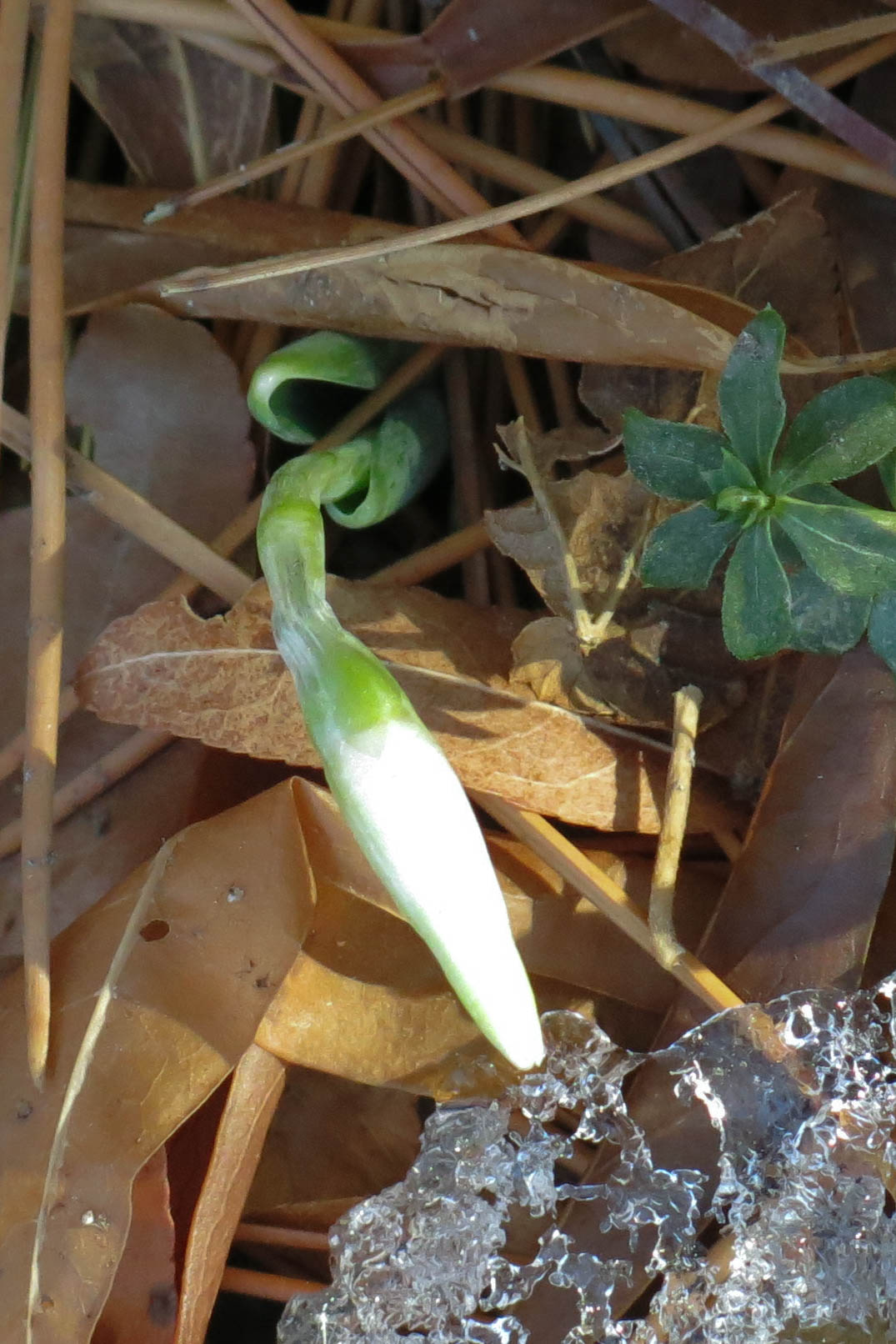 As usual, practically nothing is happening here (besides my broken toenail). There is one pathetic snowdrop trying to flower.