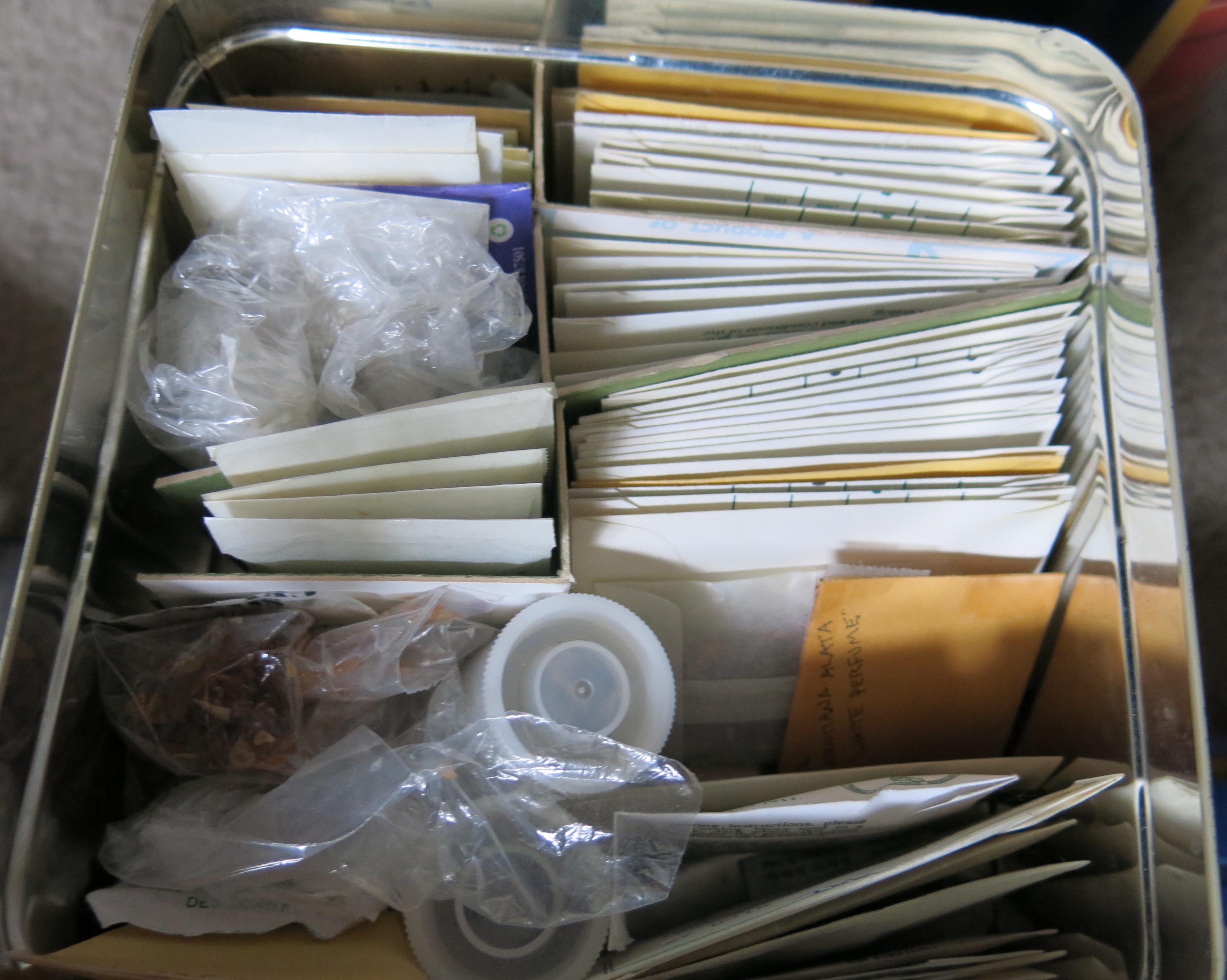 This is what he found in one of the tins. Lots of packets of seeds.