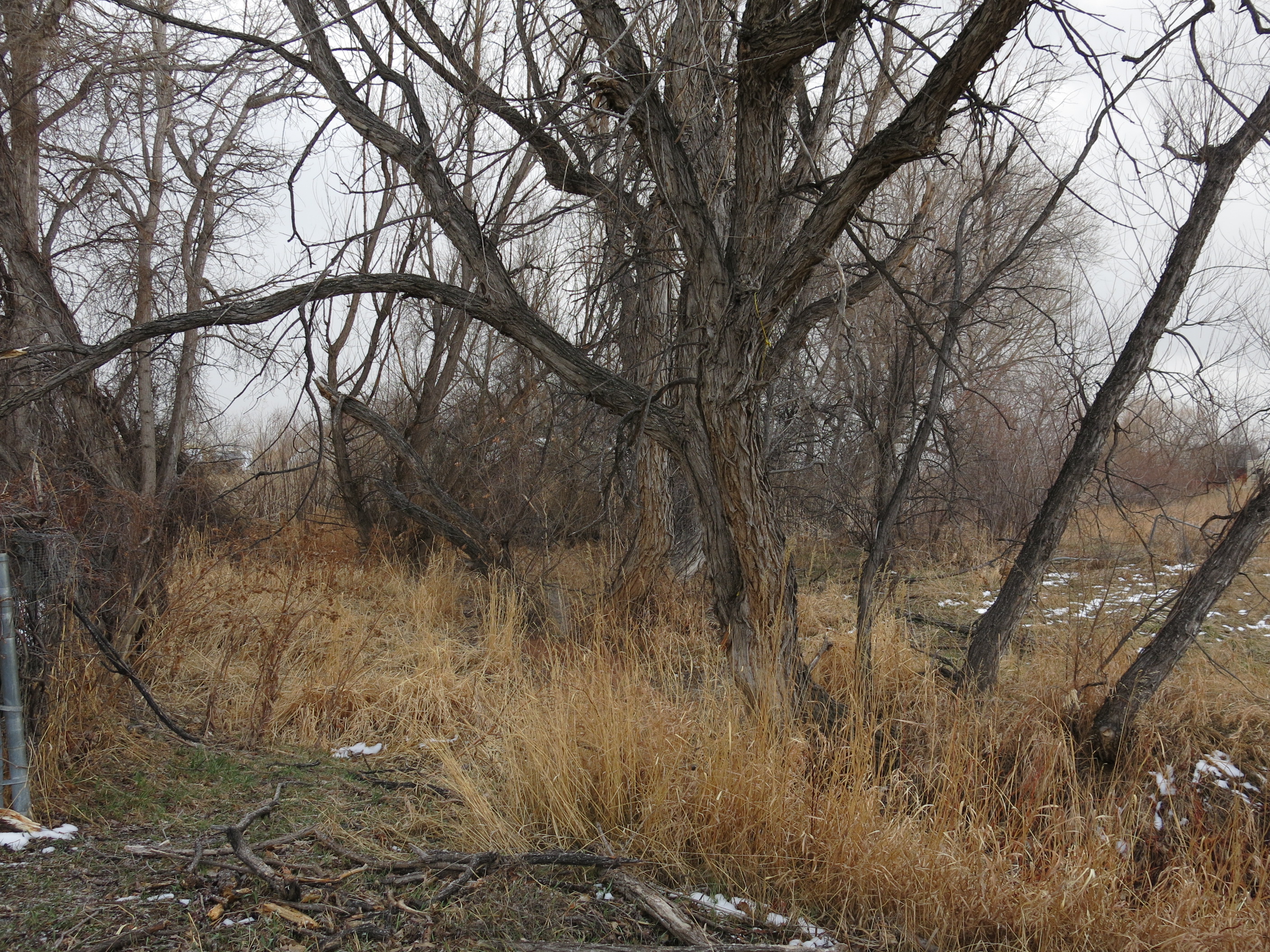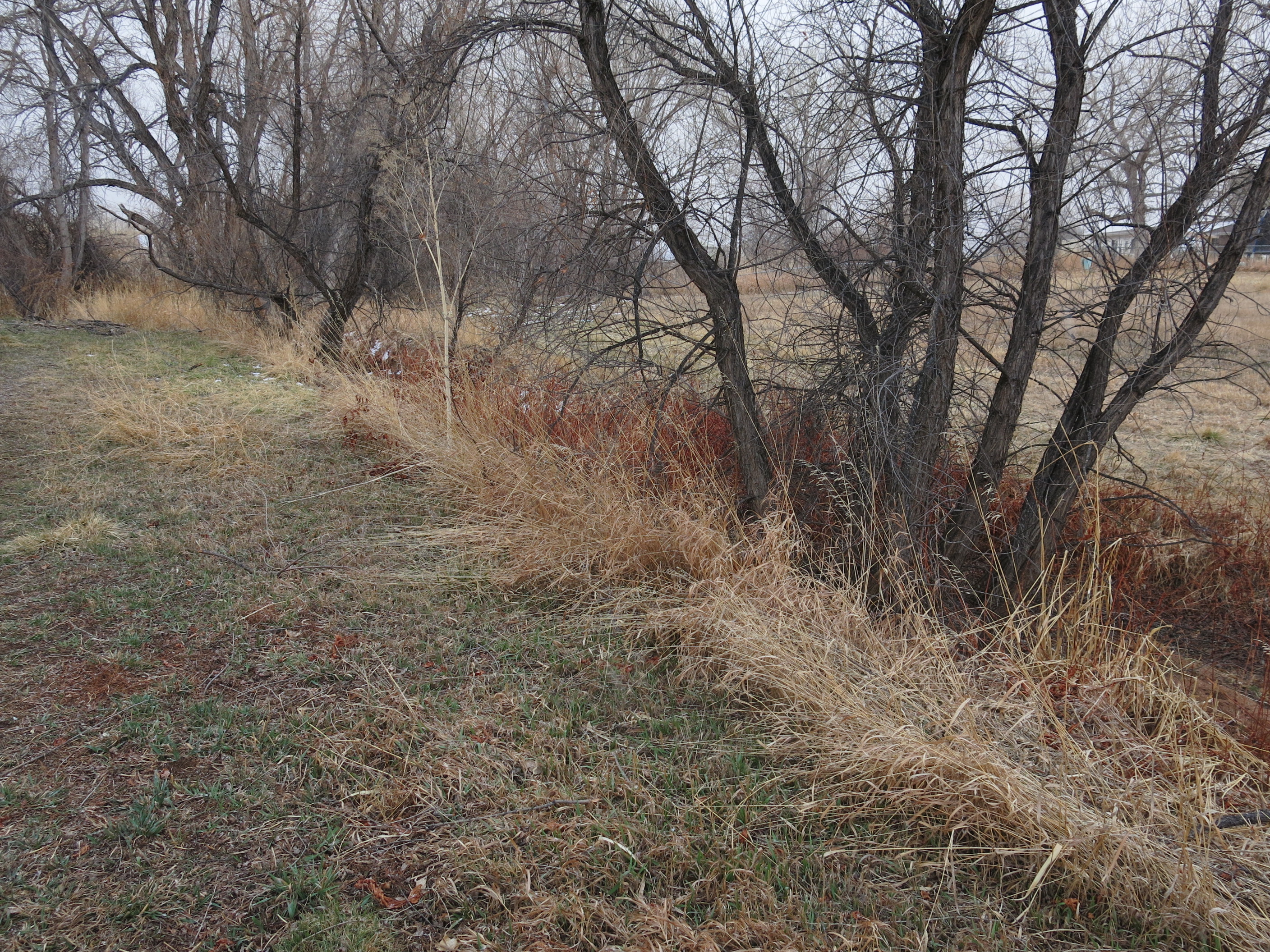 On the evening walk we go down to where the path, which is really a coyote path, stops, or at least stops for us, because the “open space” stops, and there’s a fence beyond that. The willows are kind of scary where the path stops. That’s the creek, right there.