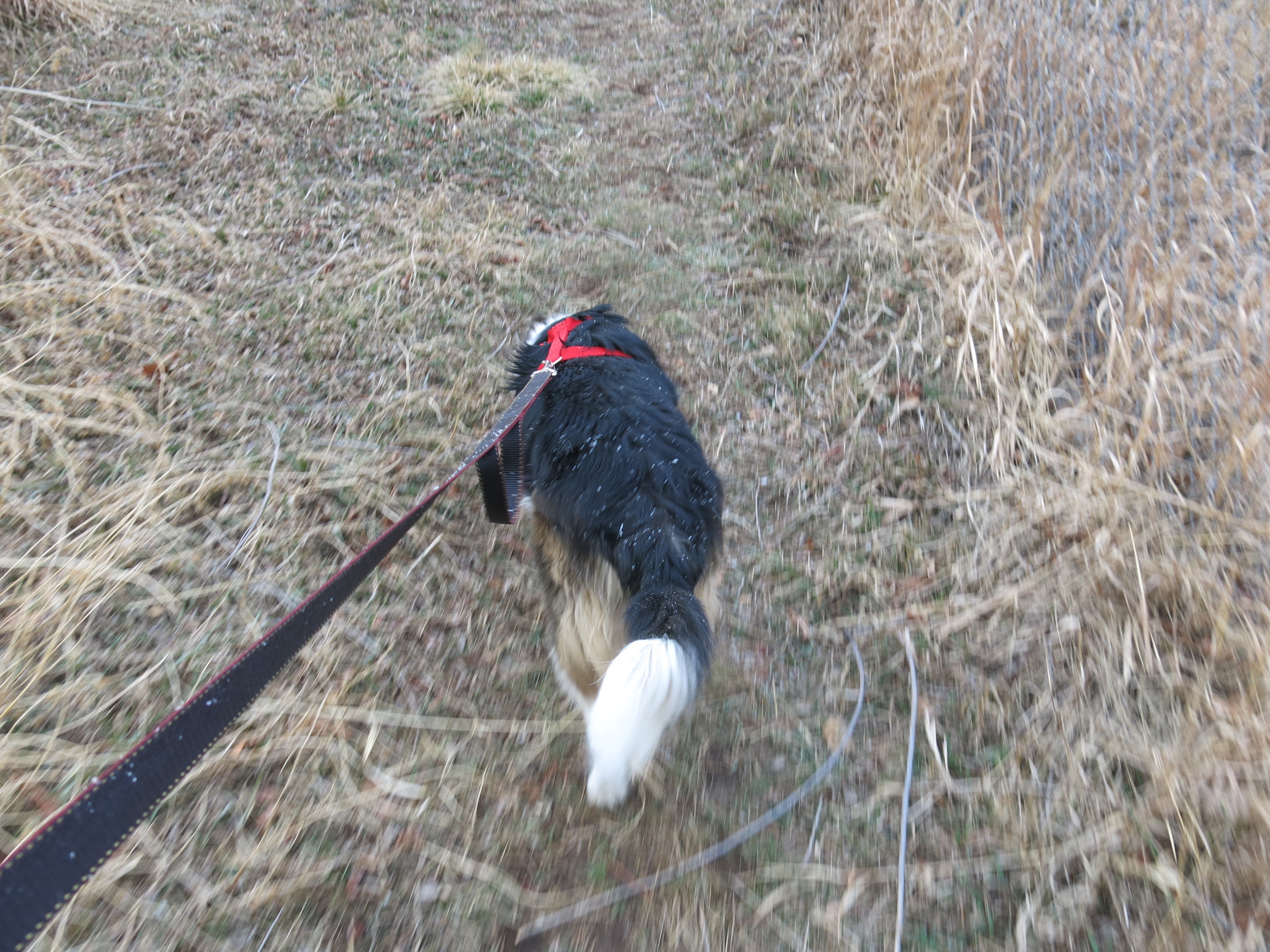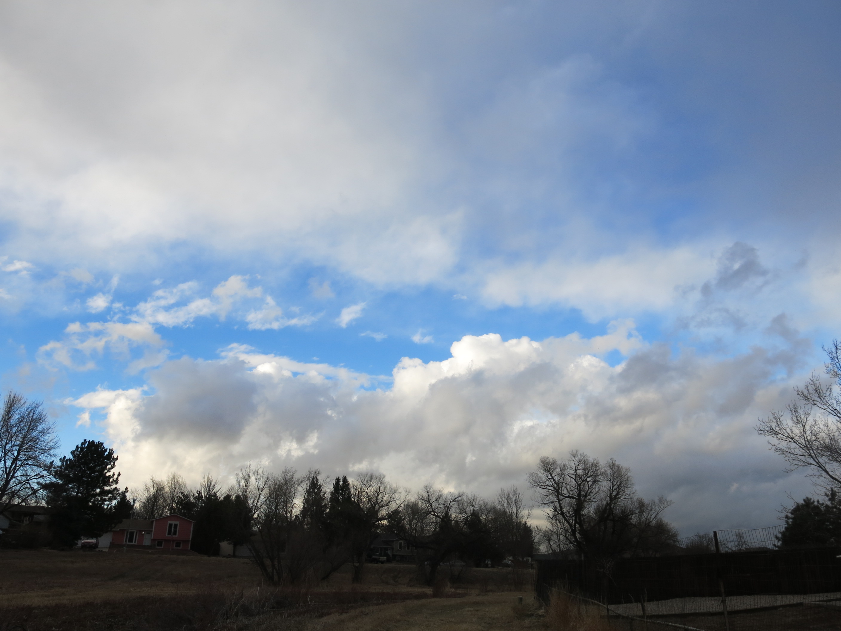 There was a day when we went for our evening walk (which is really in the afternoon, but “evening walk” sounds nicer, doesn’t it?) and it started to snow a little. The sky looked like this, but it was still snowing, because it was darker to the southwest.