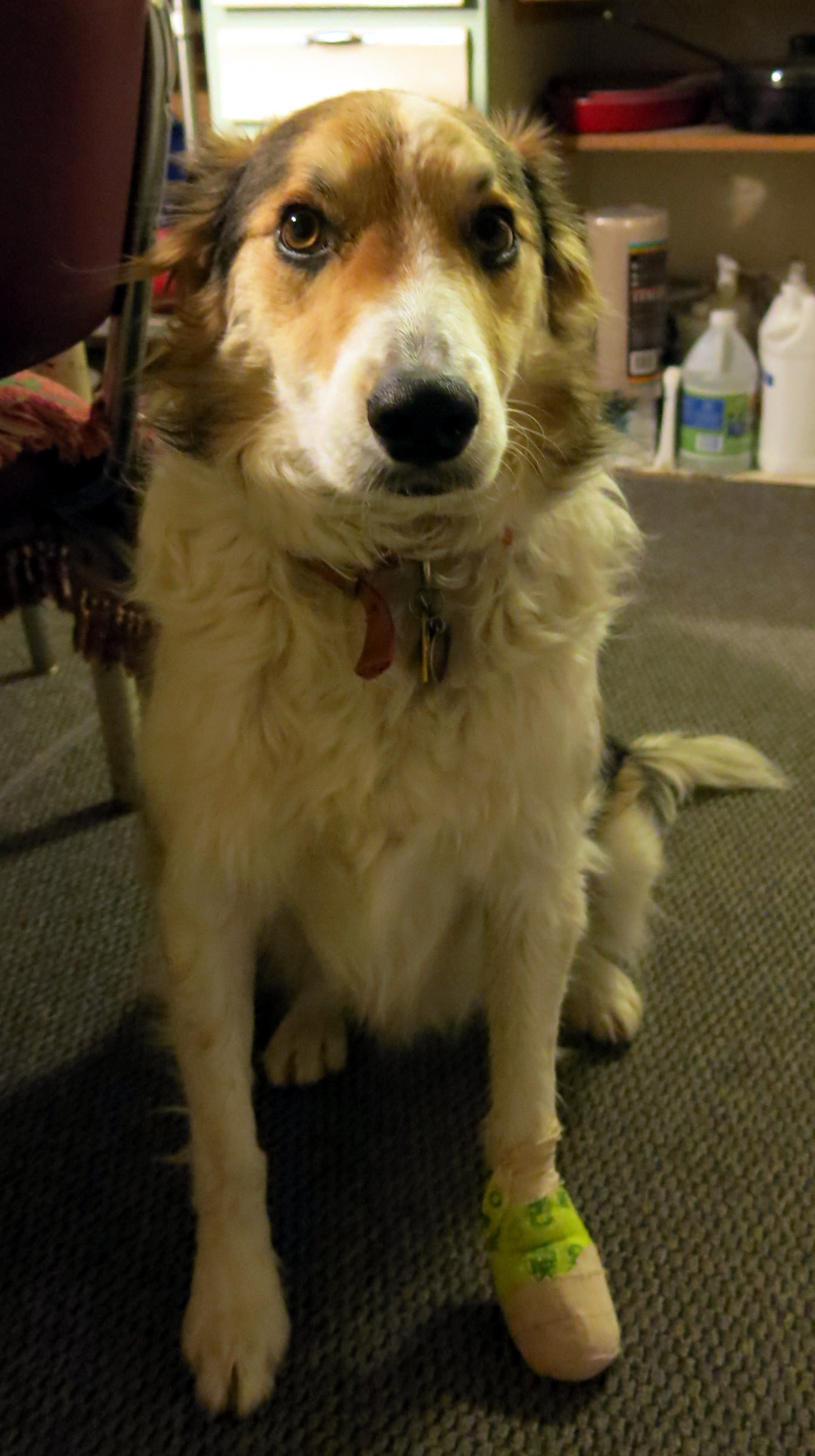 Then later that same day his friend came over for dinner and I got to jump up on her and stuff like that. Then I pulled the bandage off my foot; it was driving me crazy.